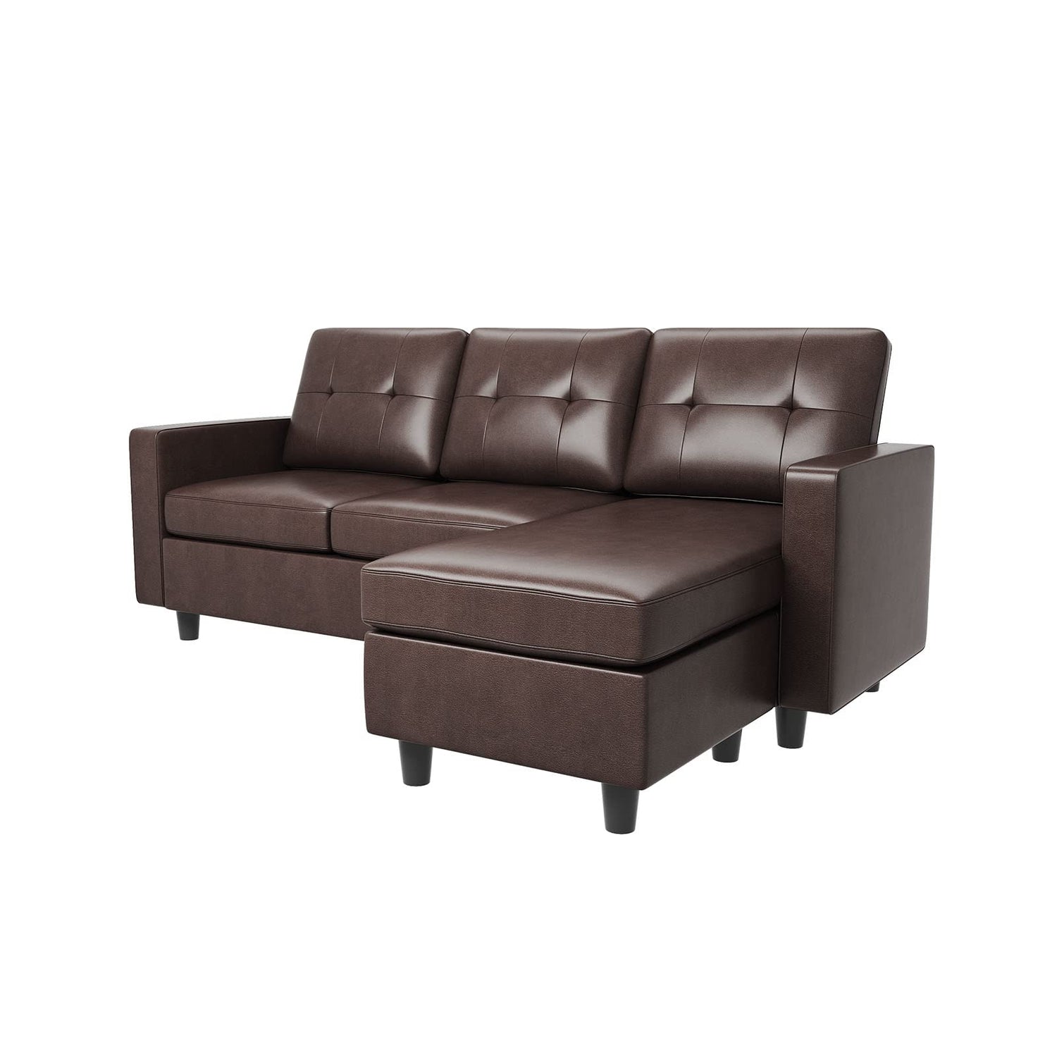 HONBAY Faux Leather Sectional Sofa, Convertible Sectional Couch L Shaped Couch Sofa for Small Space, Brown