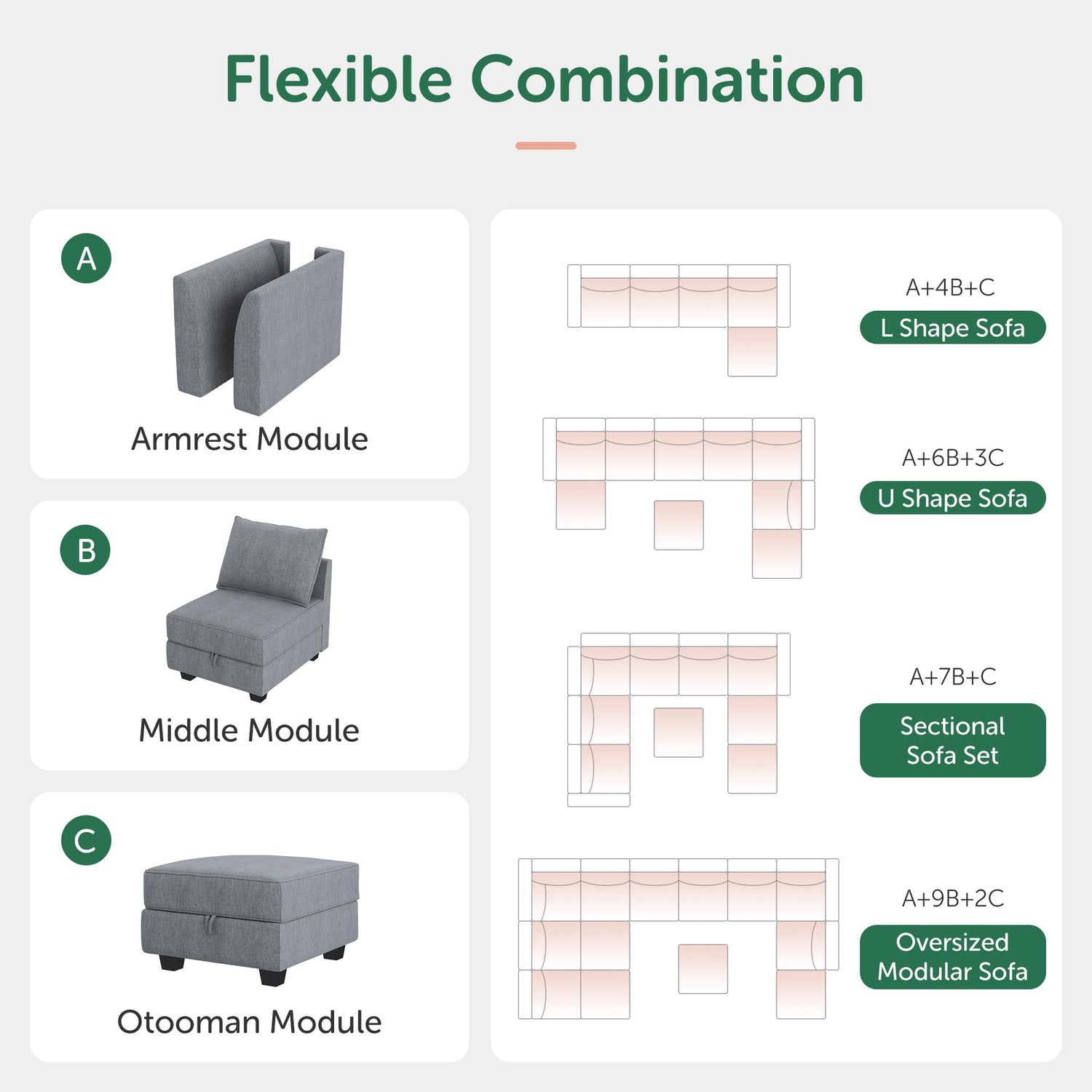 - [Flexible Combination] Rearranging the seats on modular sofas is simple and allows for a wide range of combinations to suit your needs.