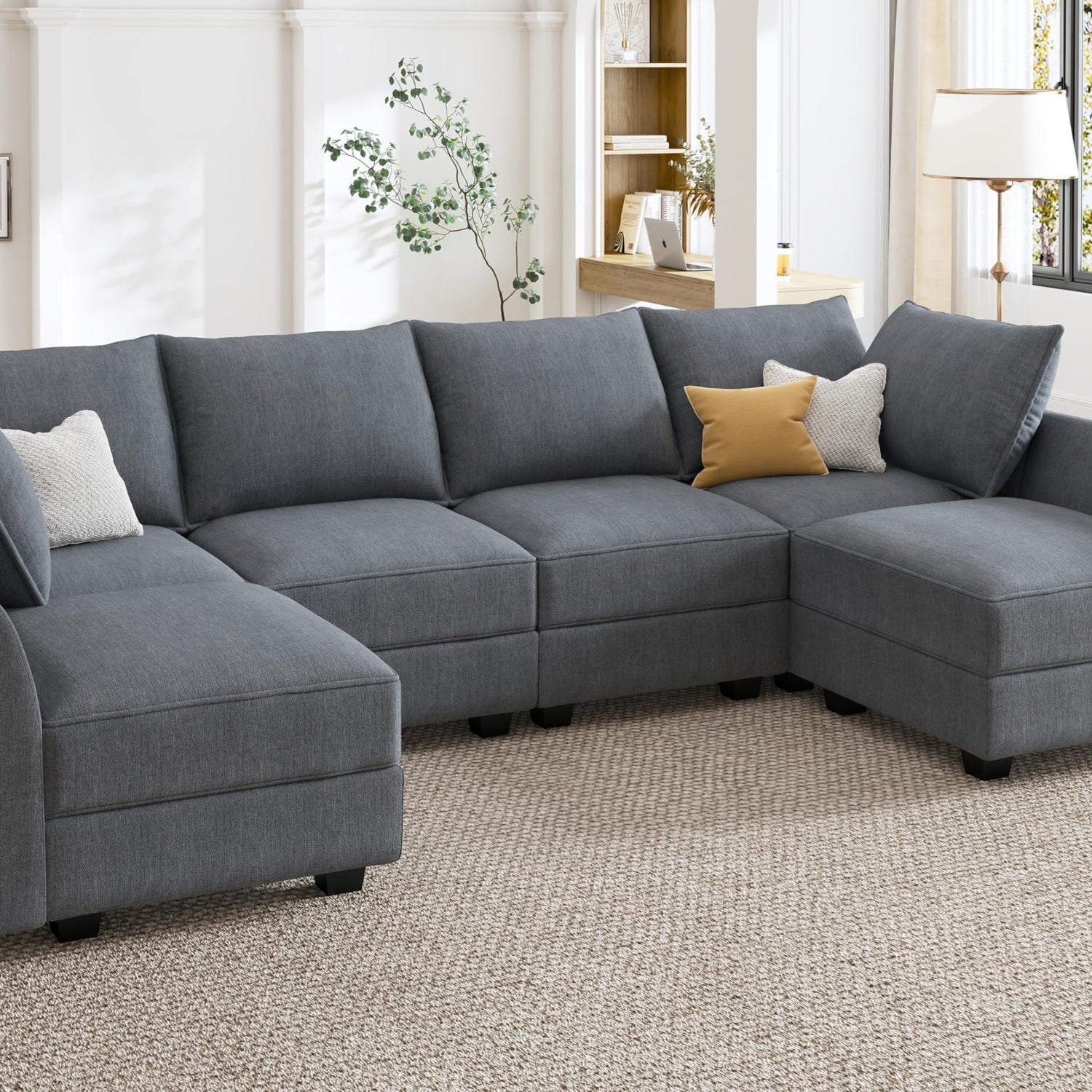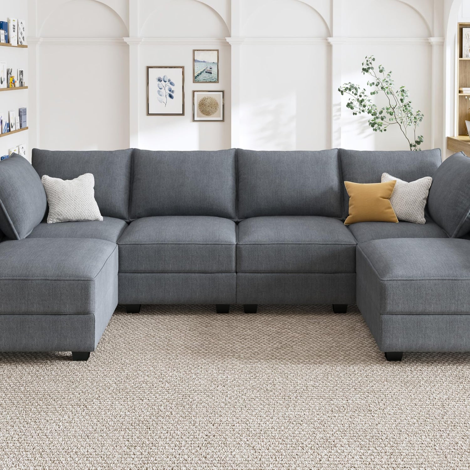 HONBAY Modular Couch U-Shaped Modular Sectional Sofa, Sectional Couch with Storage Seats (U Shape Sofa-2, Bluish Grey)
