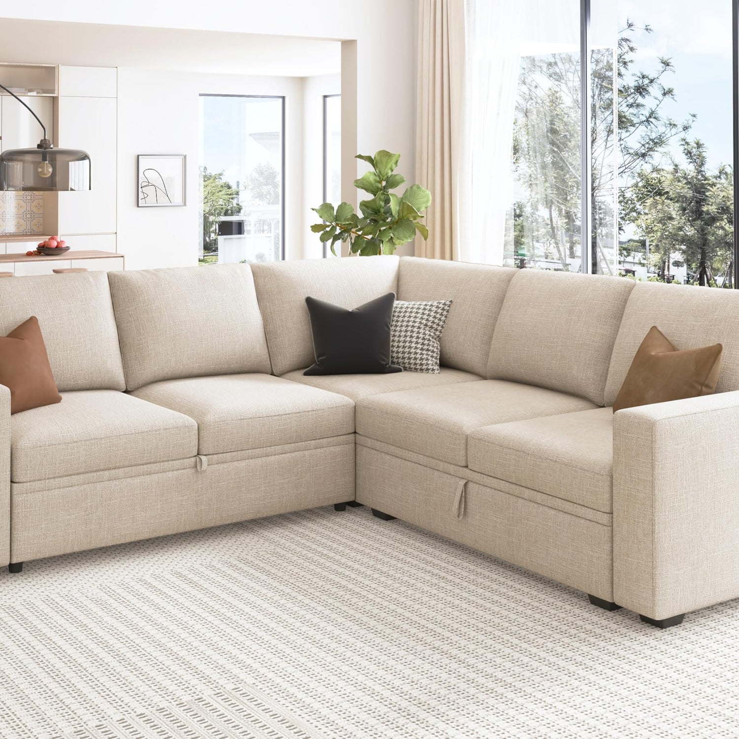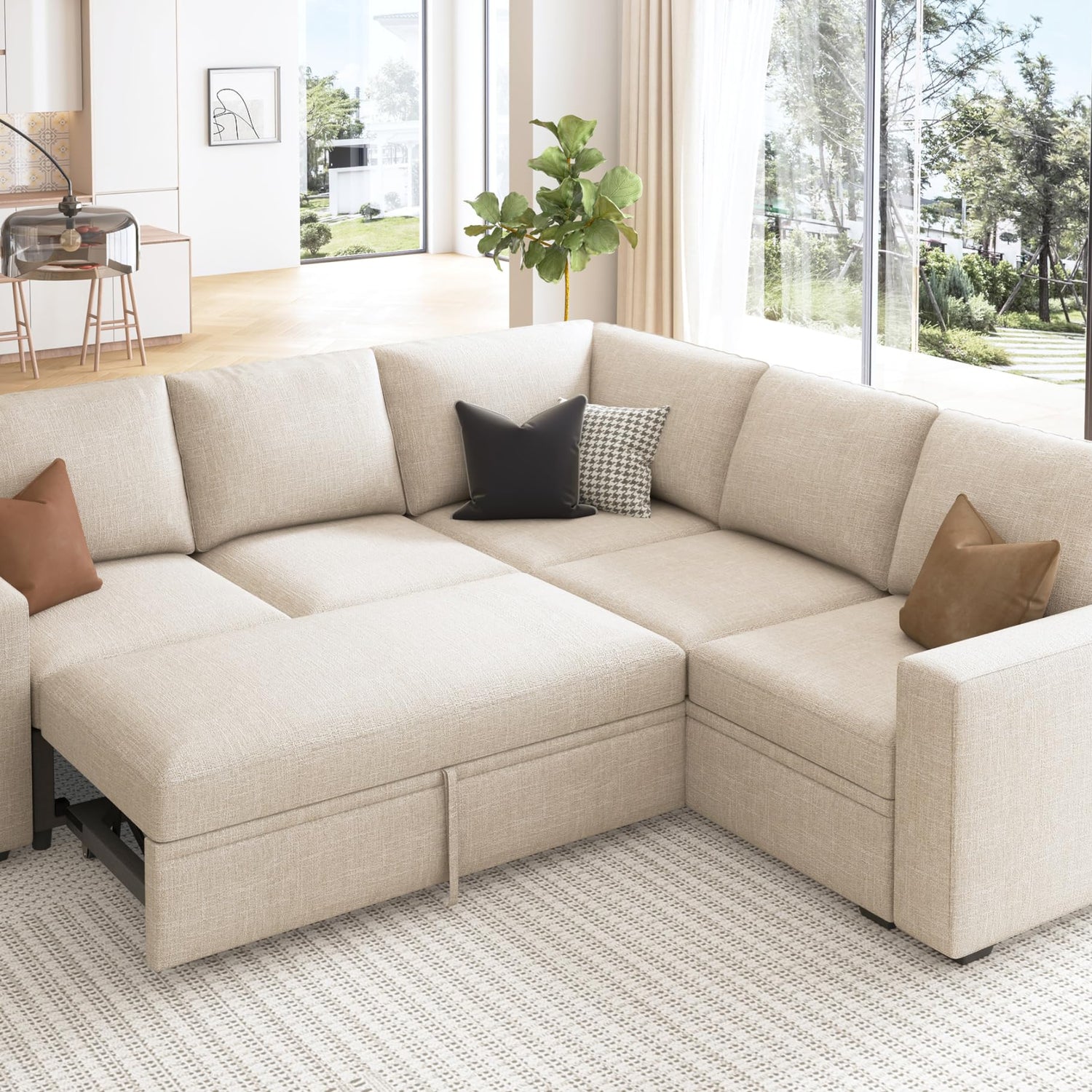 - Convenient Pull-Out Sleeper: Transform your sectional sofa into a cozy bed effortlessly with the integrated pull-out sleeper sofa, providing a comfortable sleeping surface for guests or family movie night