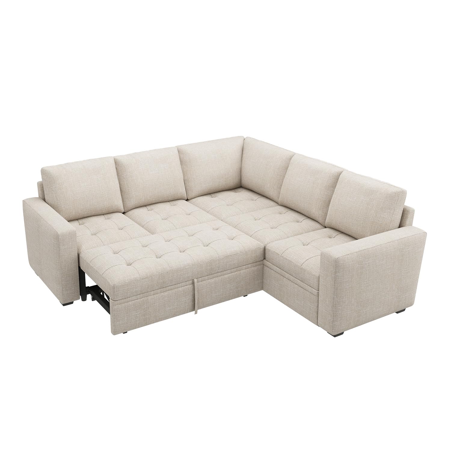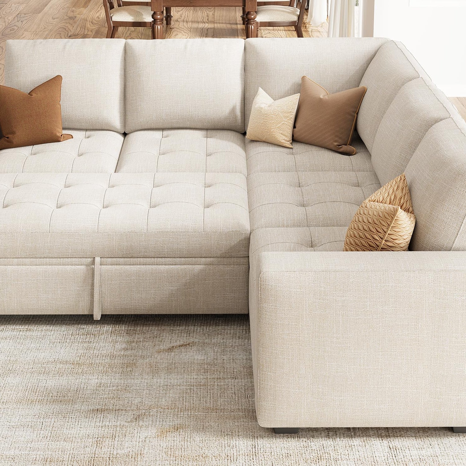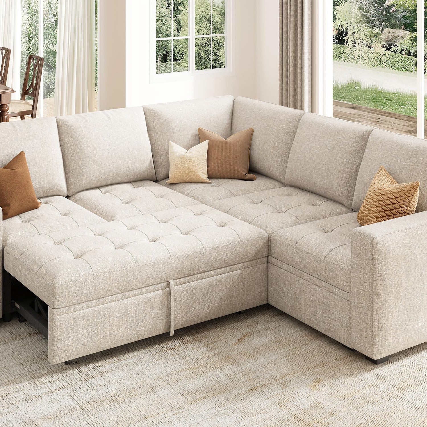 HONBAY Modular Sectional Sleeper Sofa with Pull Out Bed, Rearrangeable Sectional Couch with Storage Seat, Sectional Couches for Living Room,Beige