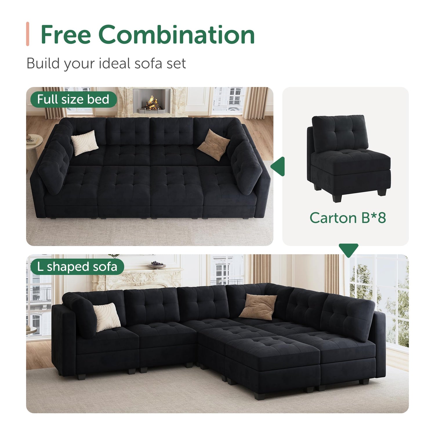- Flexible modular sofa: Great adaptability, you can easily rearrange each seat and backrest to create various shapes