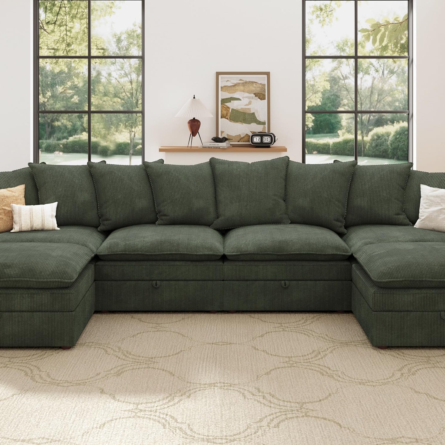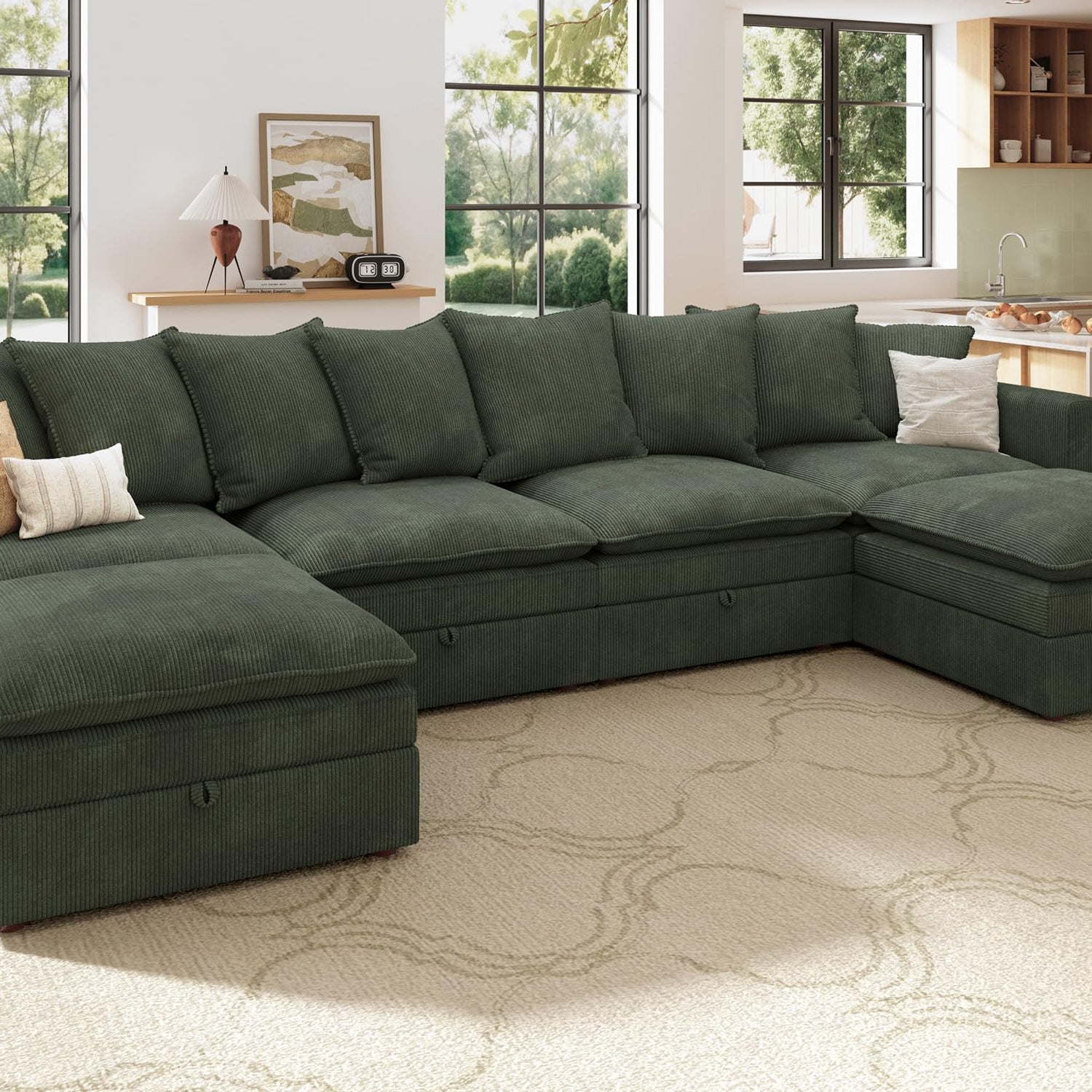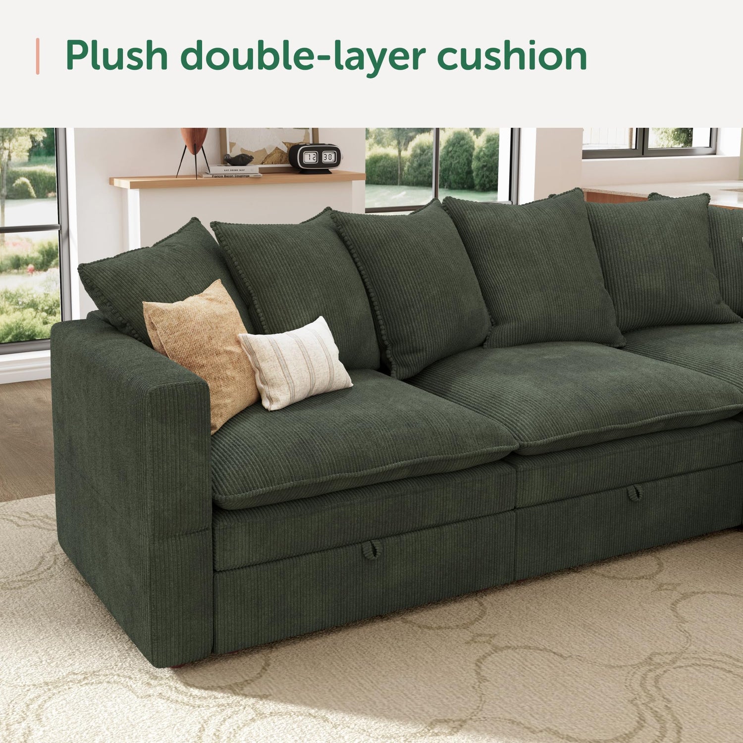 HONBAY Modular Sectional Sofa, Corduroy Sectional Couches for Living Room, U Shaped Couch with Storage, Green