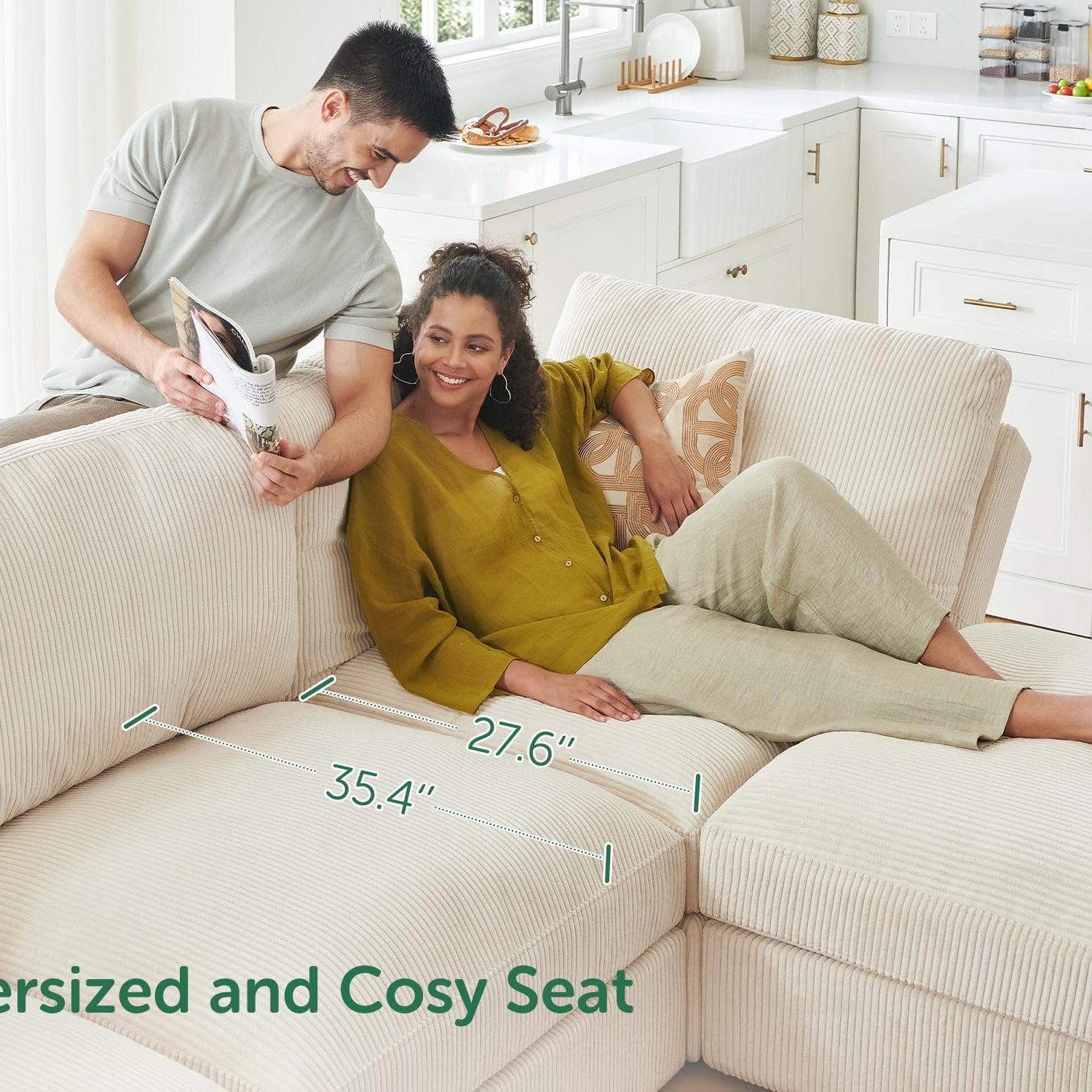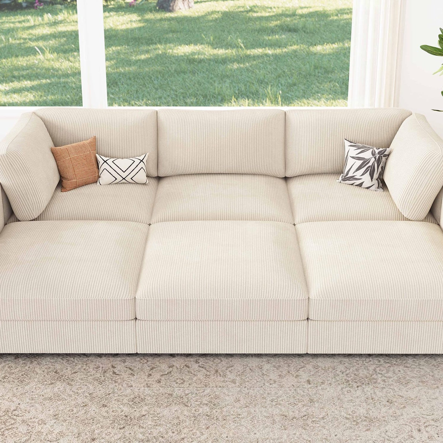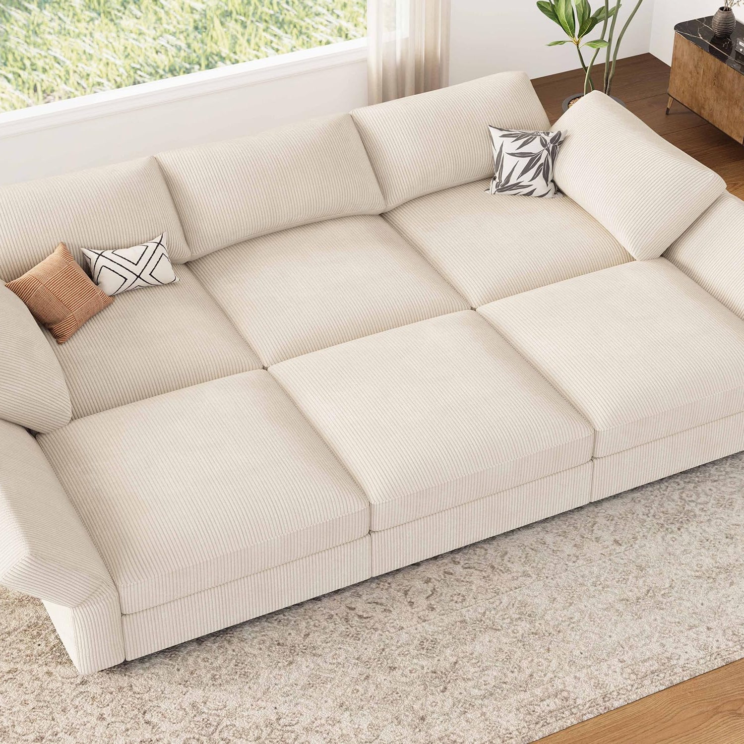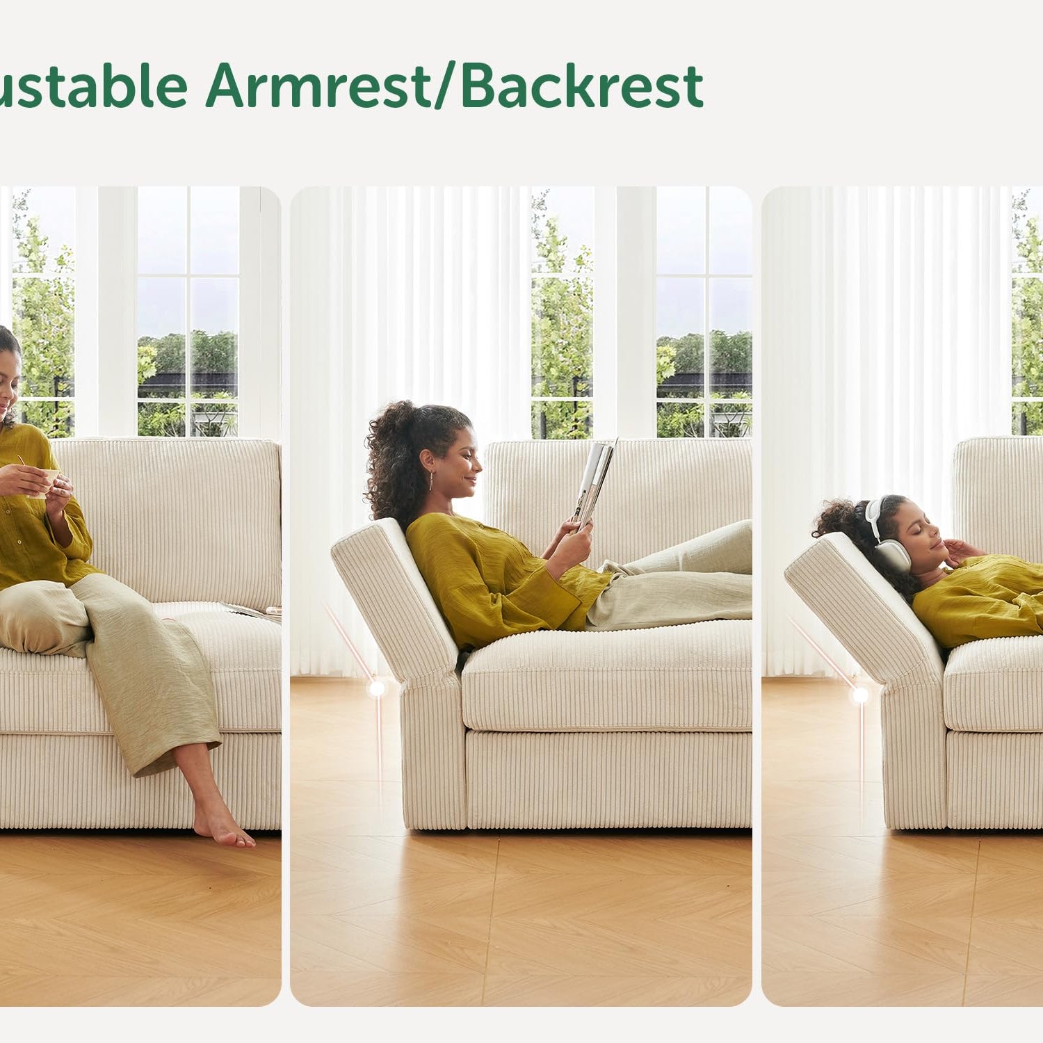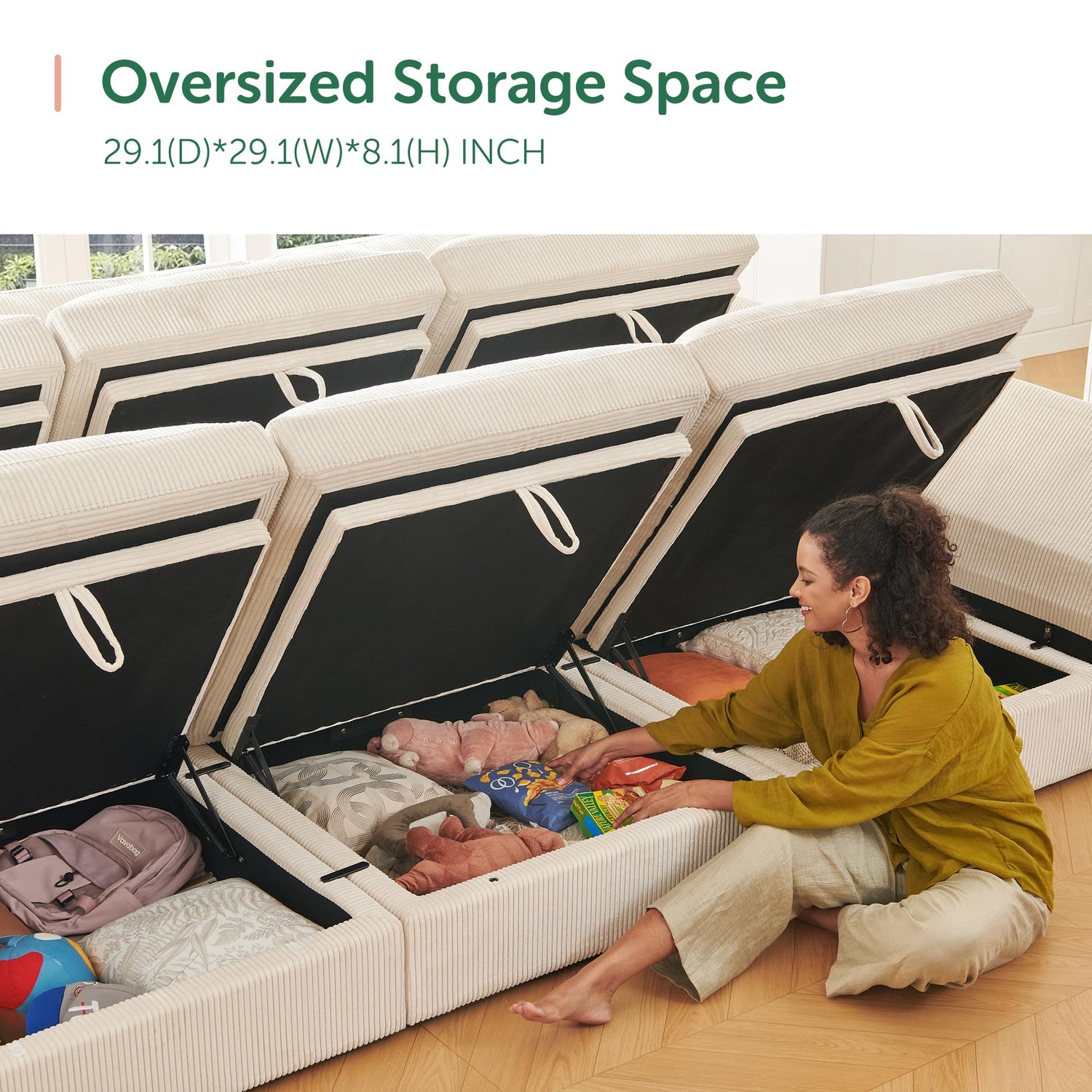 HONBAY Modular Sectional Sofa with Storage Corduroy Sectional Sleeper Sofa Modular Sectional Couches for Living Room,Beige