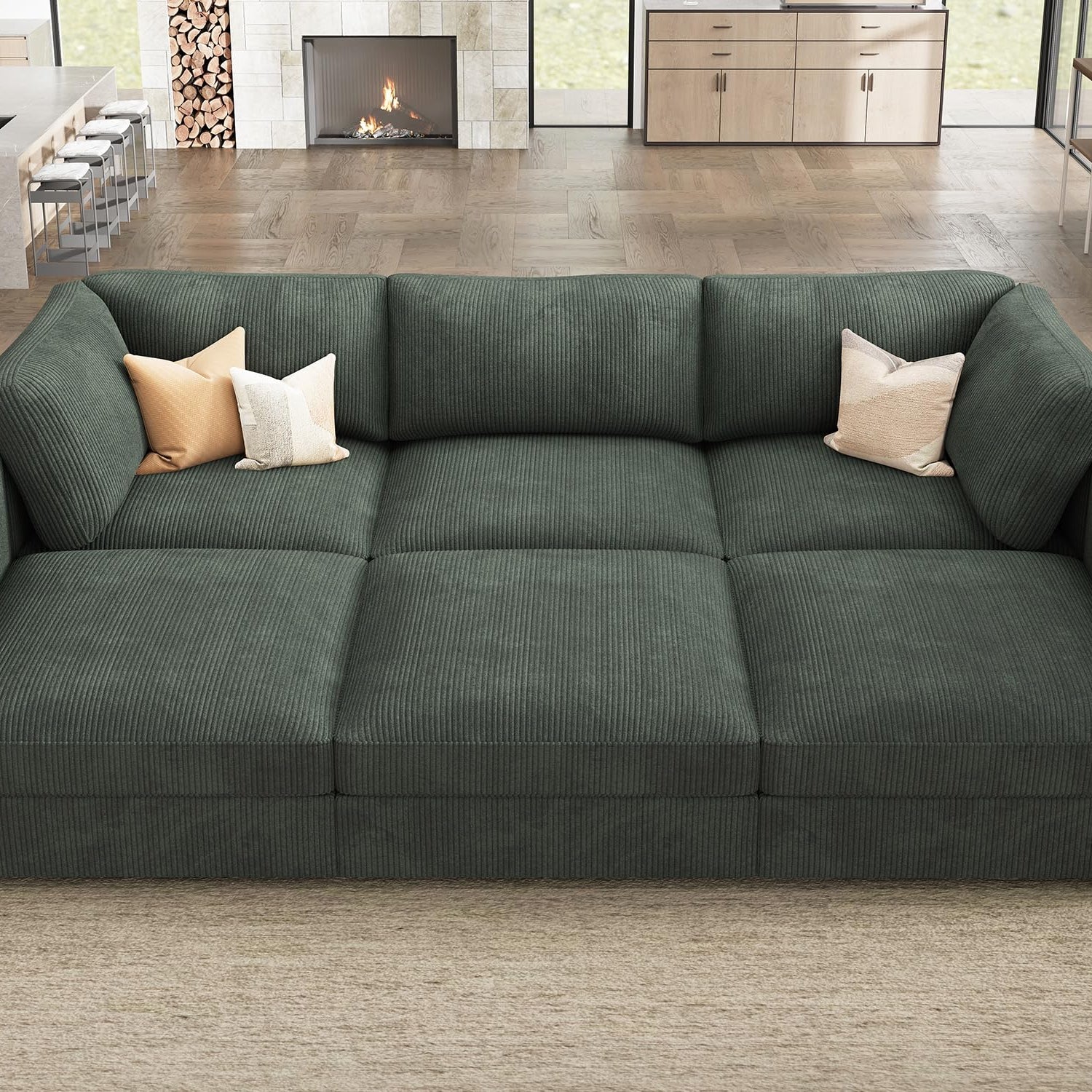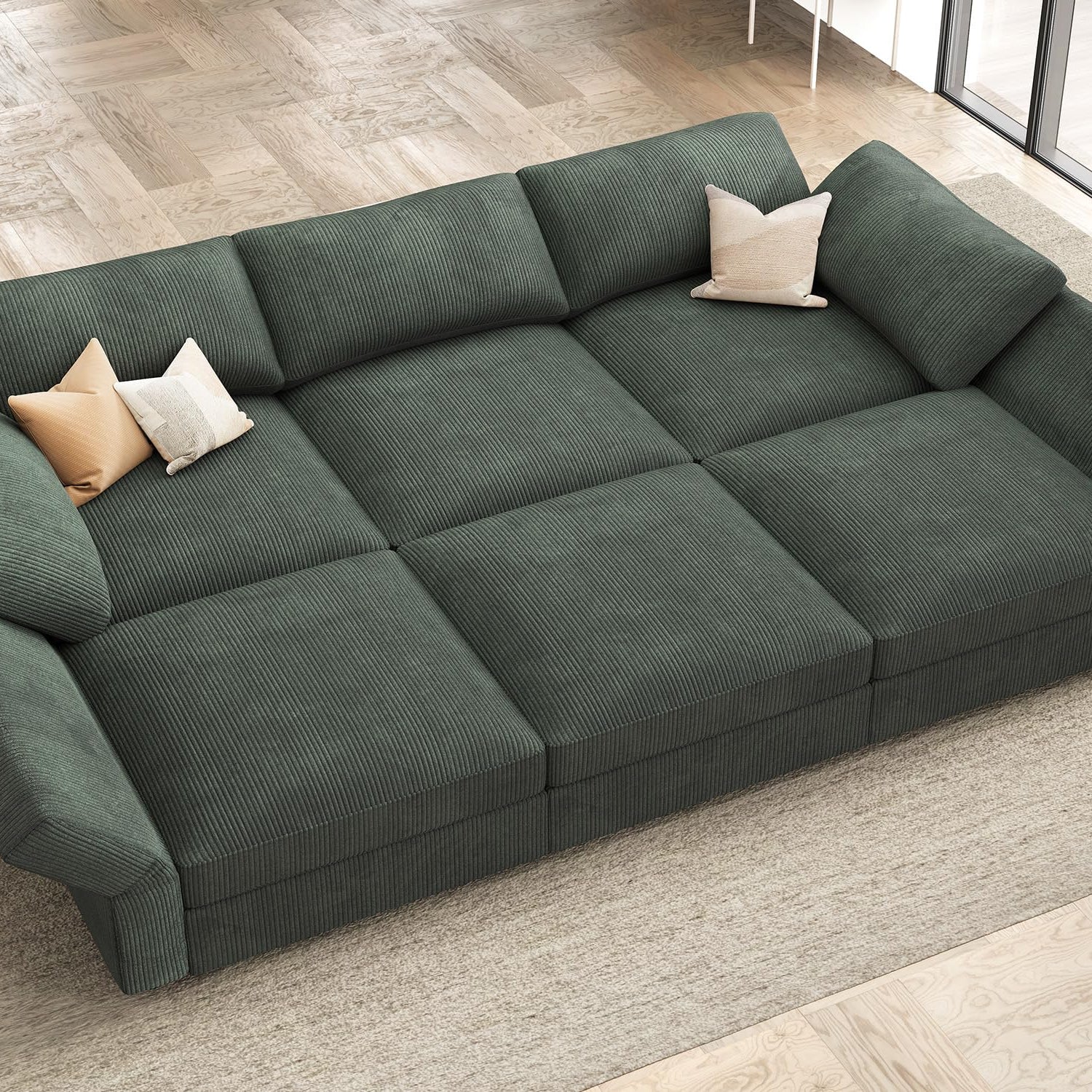 HONBAY Modular Sectional Sofa with Storage Corduroy Sectional Sleeper Sofa Modular Sectional Couches for Living Room,Green