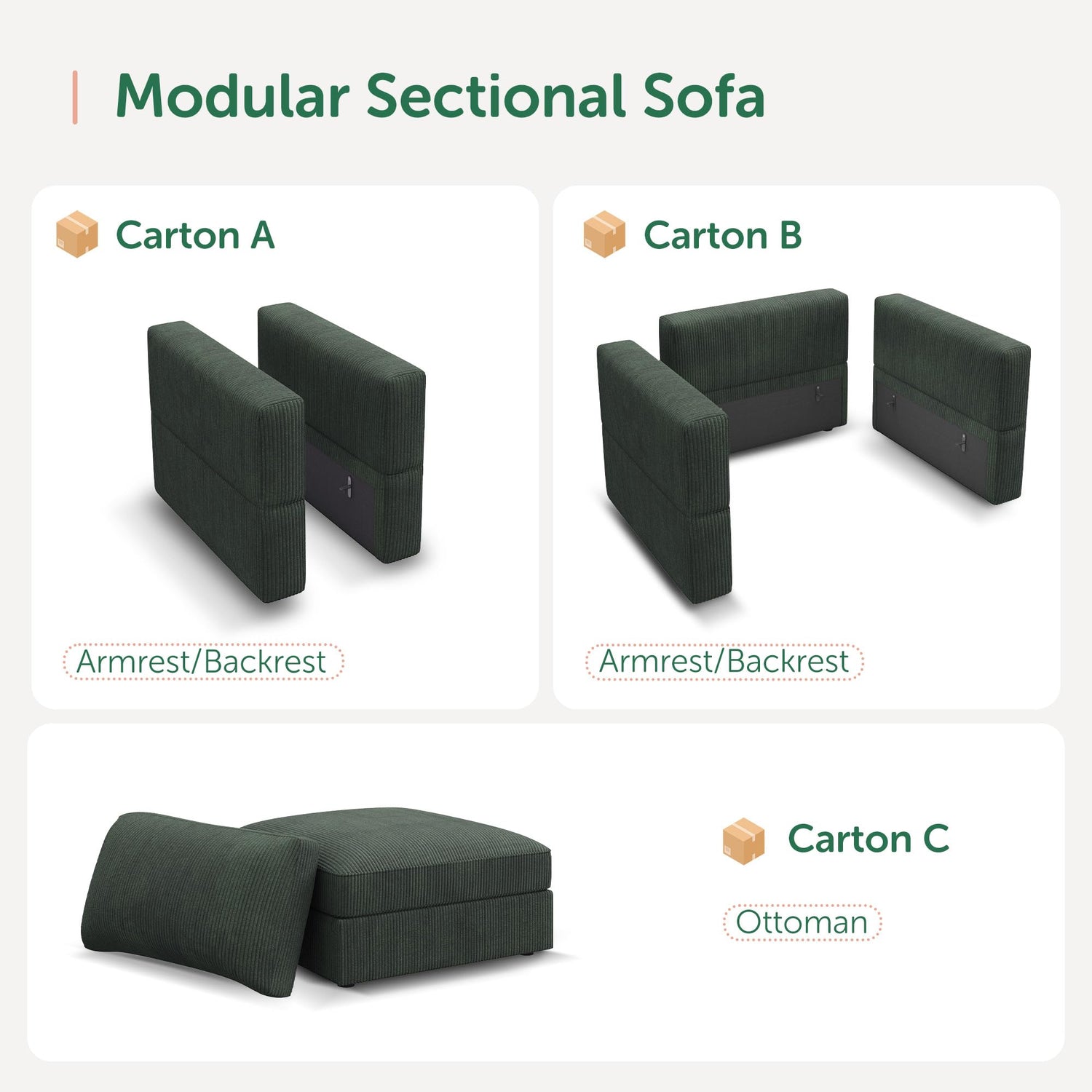 Details: HONBAY Ottoman Module for Corduroy Modular Sectional Sofa with a Back Cushion, Storage Square Ottoman Bench for Living Room, Green