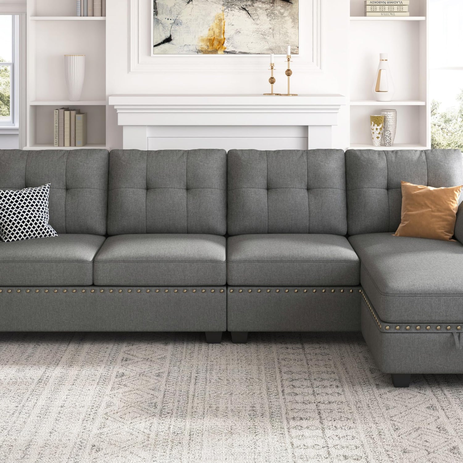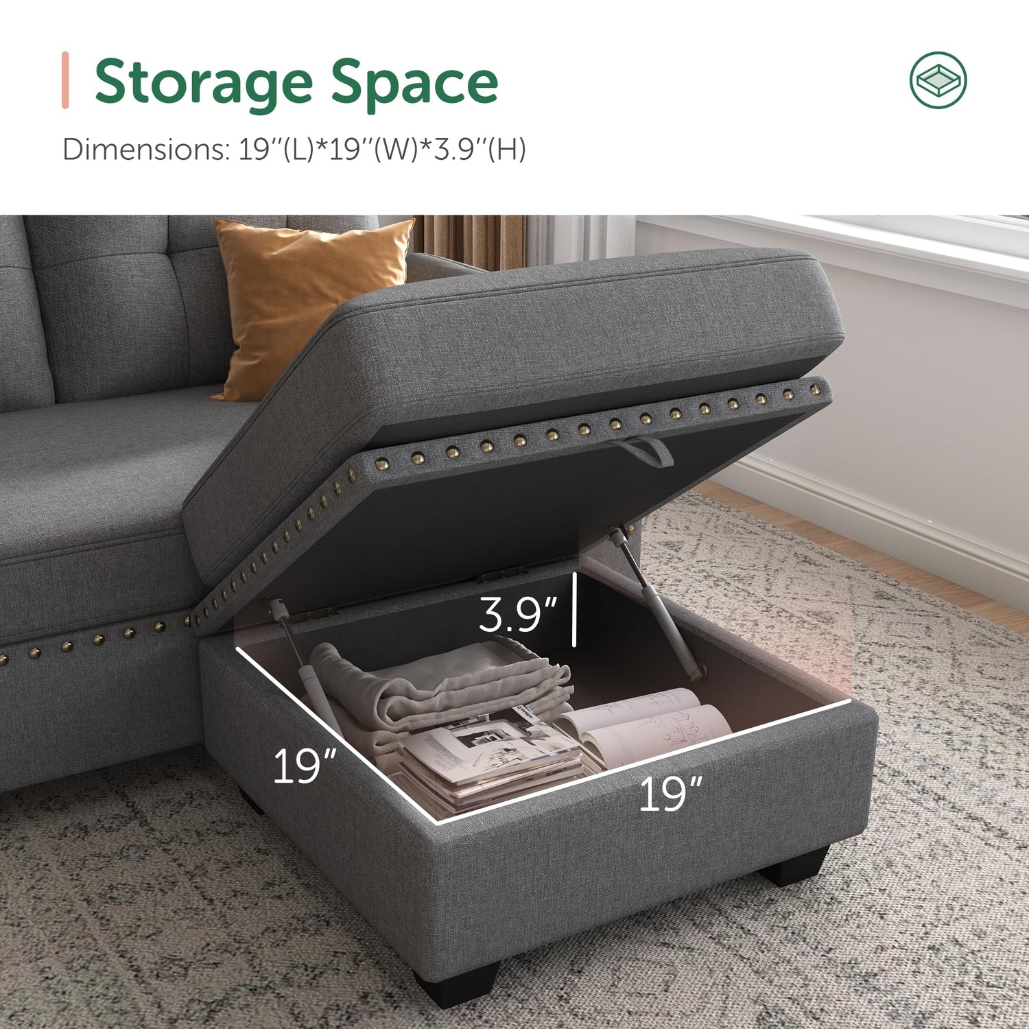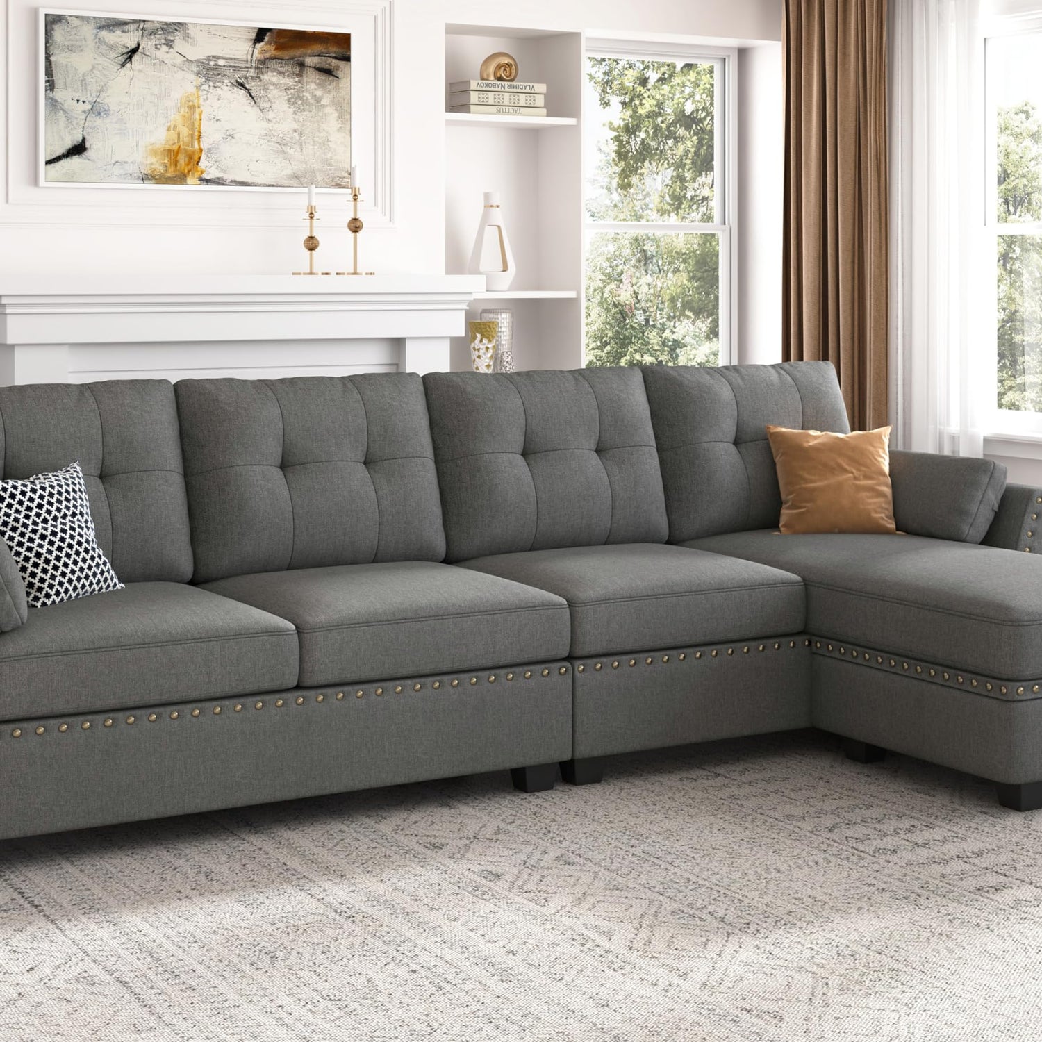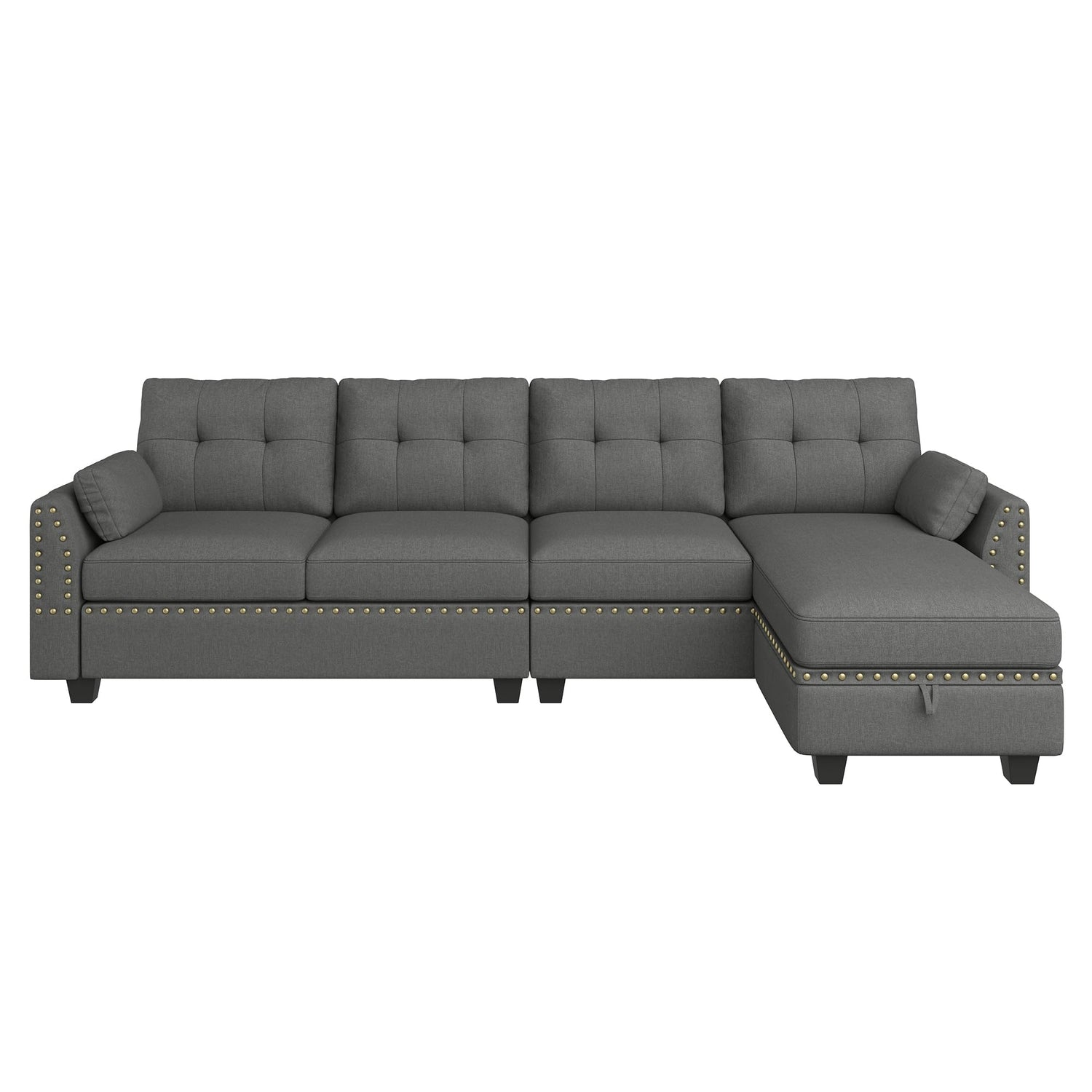 - Fashionable Appearance: HONBAY 4-seat sectional couch sofa with nail-head trim and storage bag