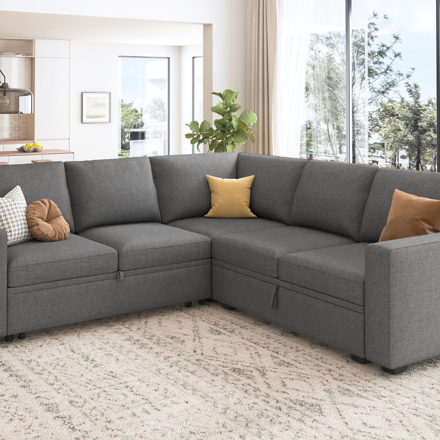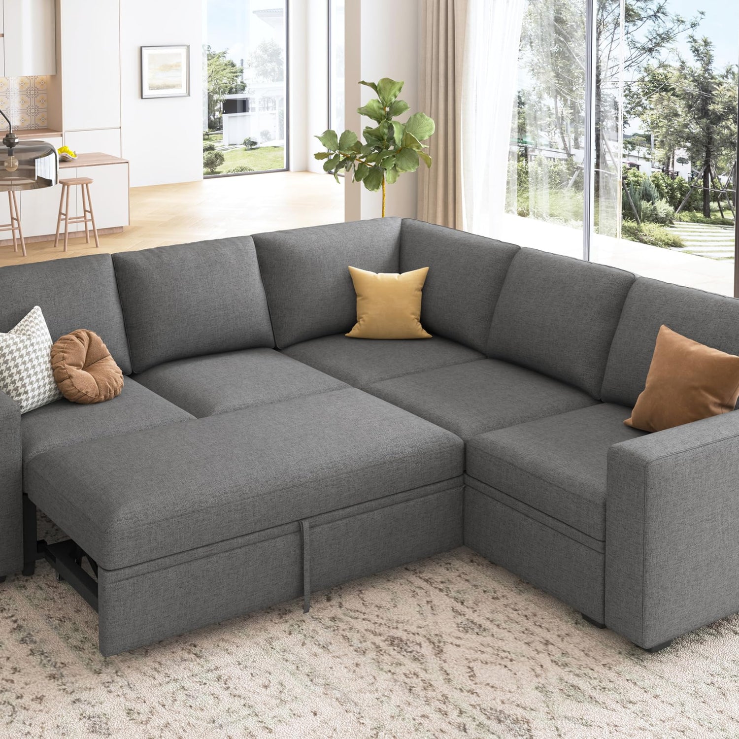 HONBAY Sectional Sleeper Sofa with Pull Out Bed, L Shaped Couch with Storage Seat, Modular Sectional Couches for Living Room, Dark Grey