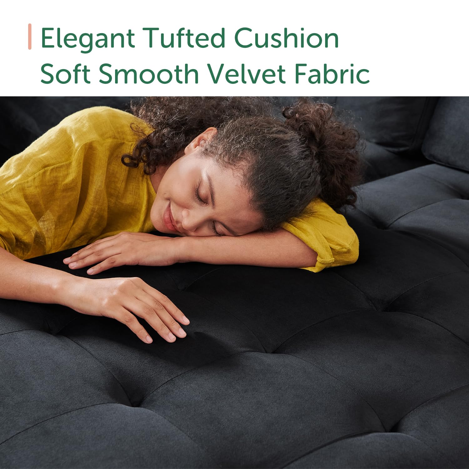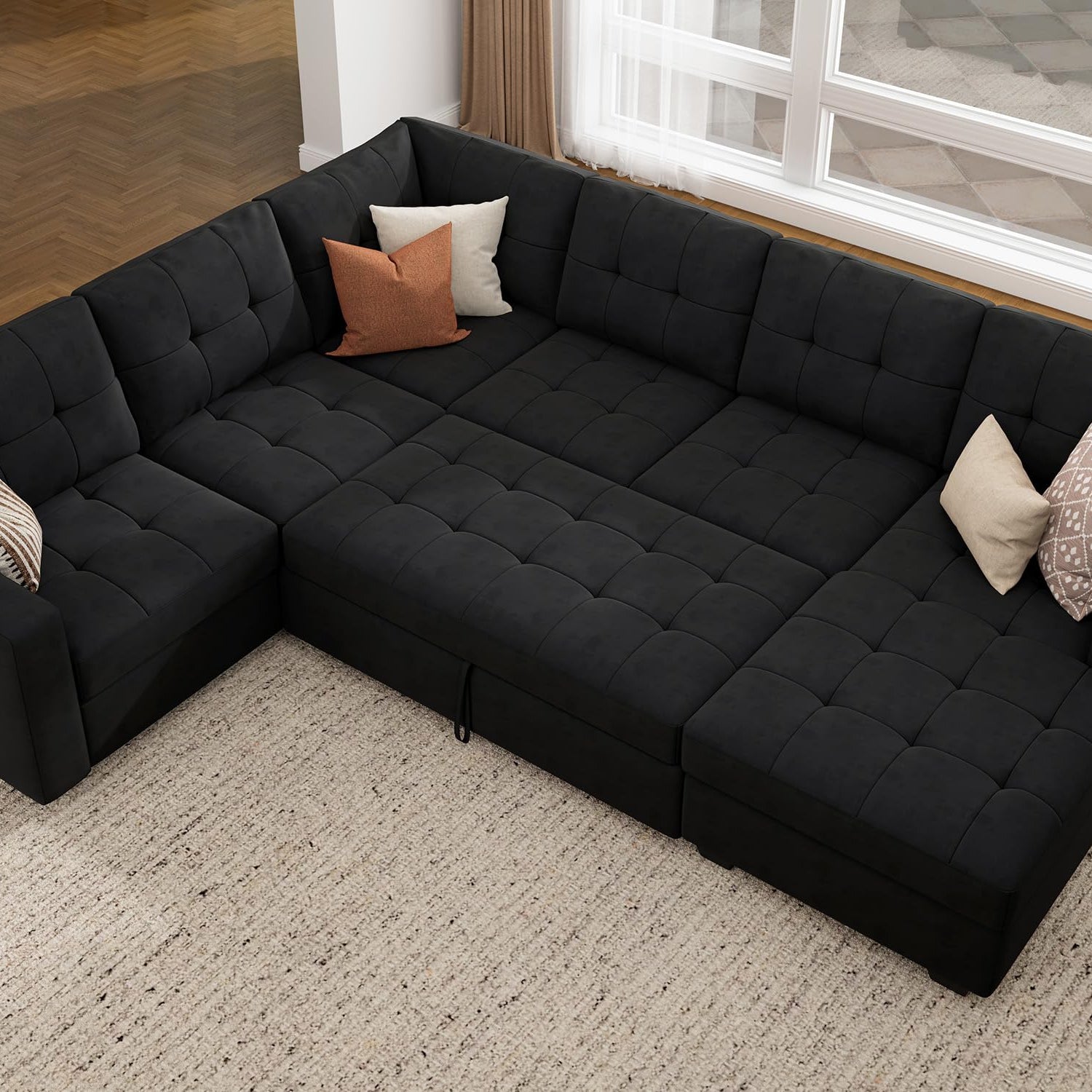 HONBAY Sectional Sleeper Sofa with Pull Out Bed, Sleeper Sectional Couch for Living Room, Sleeper Sofa Bed with Storage Chaise, Velvet Black