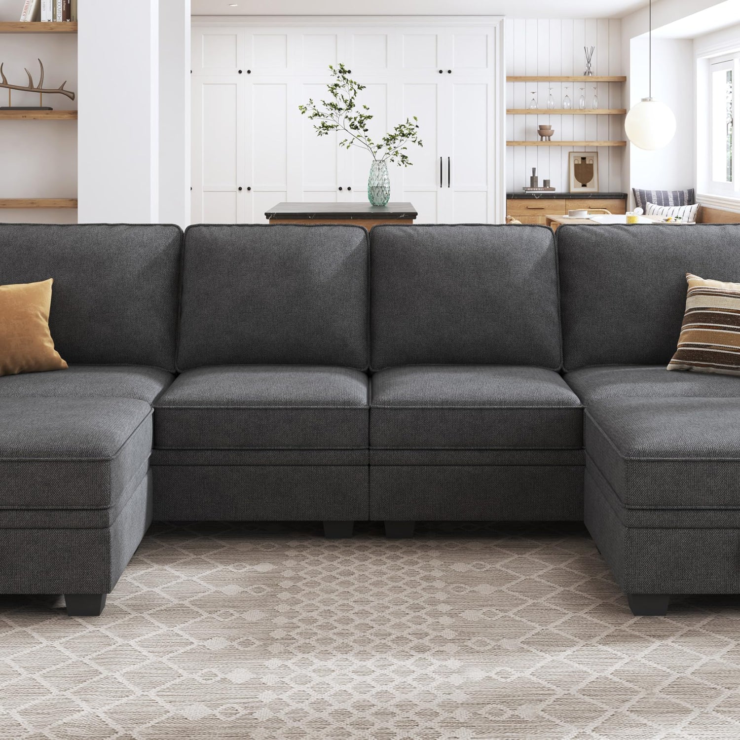 - Spacious Sofa: This u shaped sectional sofa is made with a sturdy solid wood frame and cushions filled with high-density sponge and wrapped in 100% polyester fabric