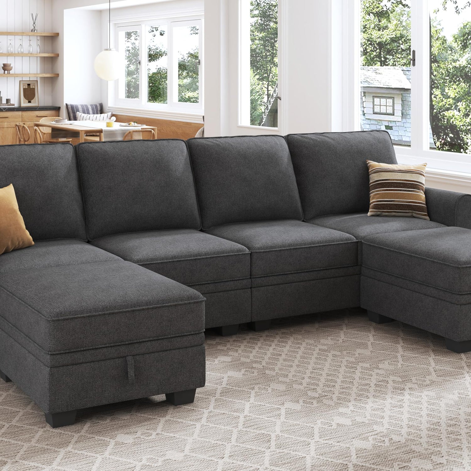 HONBAY Sectional Sofa with Storage Seat U Shaped Sectional Couch with Reversible Chaise Convertible Sectional Couch for Living Room,Dark Grey