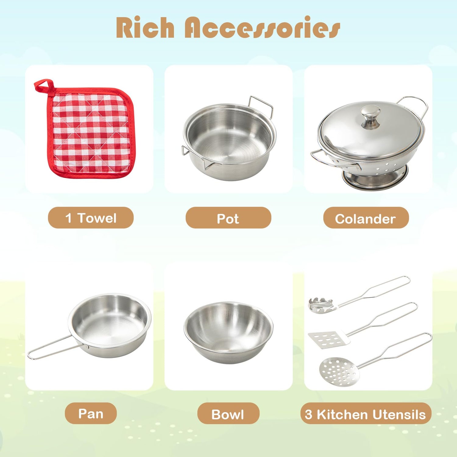 - 【Realistic Cooking Experience】: The wooden sandpit has a cooking area for kids to experience the cooking fun. Kids can wash toy vegetables in the removable sink, rotate the knobs for ignition simulation, stir-fry or barbecue like a real chef. It also comes with 1 towel, 1 pot with lid, 1 pan, 1 bowl, 1 colander, and 3 kitchen utensils.