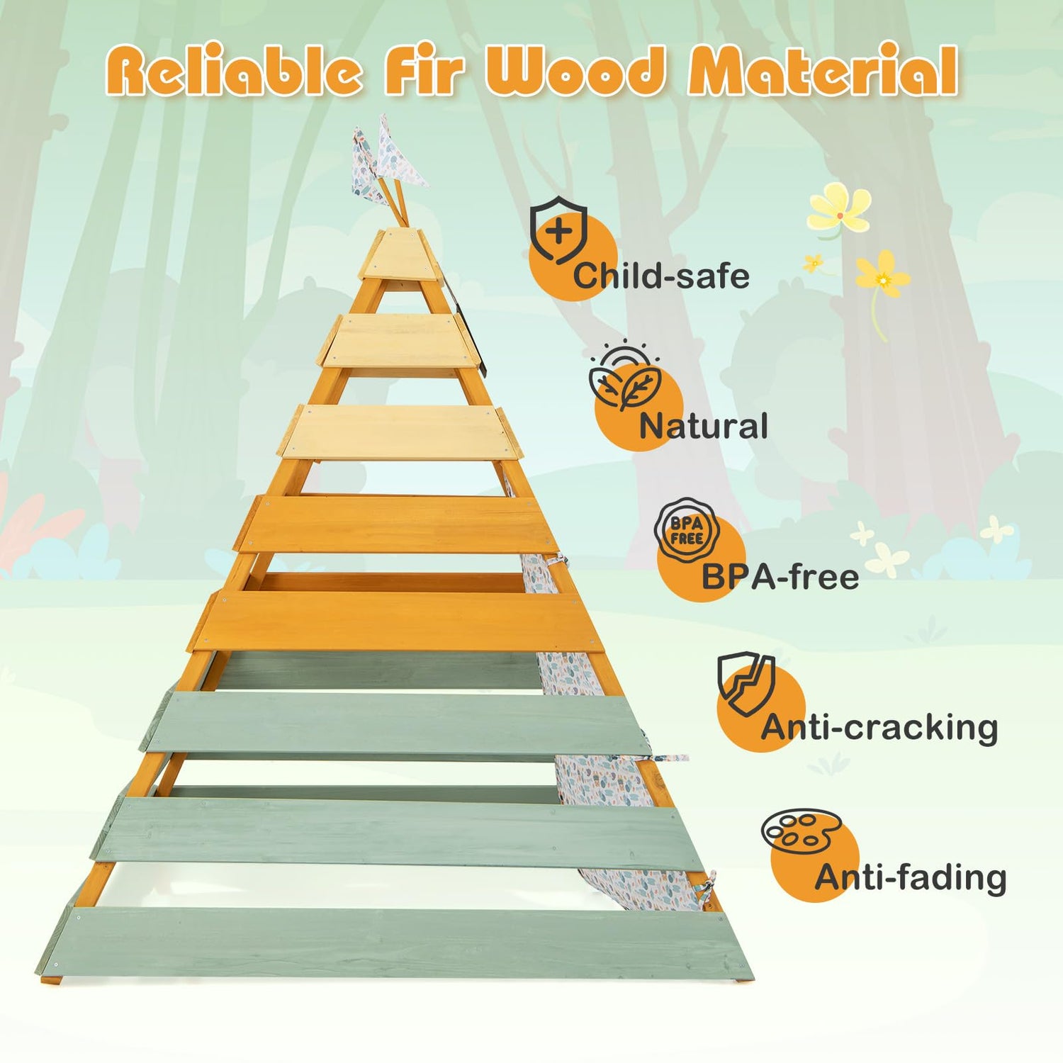 - 【Reliable Fir Wood Material】Featuring natural fir wood material, the teepee tent is BPA-free and child-safe. The anti-fading and anti-cracking fir wood frame also ensures long-lasting playtime and is ideal for outdoor use. The toddler tent complies with ASTM and CPSIA for excellent security and reliability. Burr-free surface is also safe for kids.
