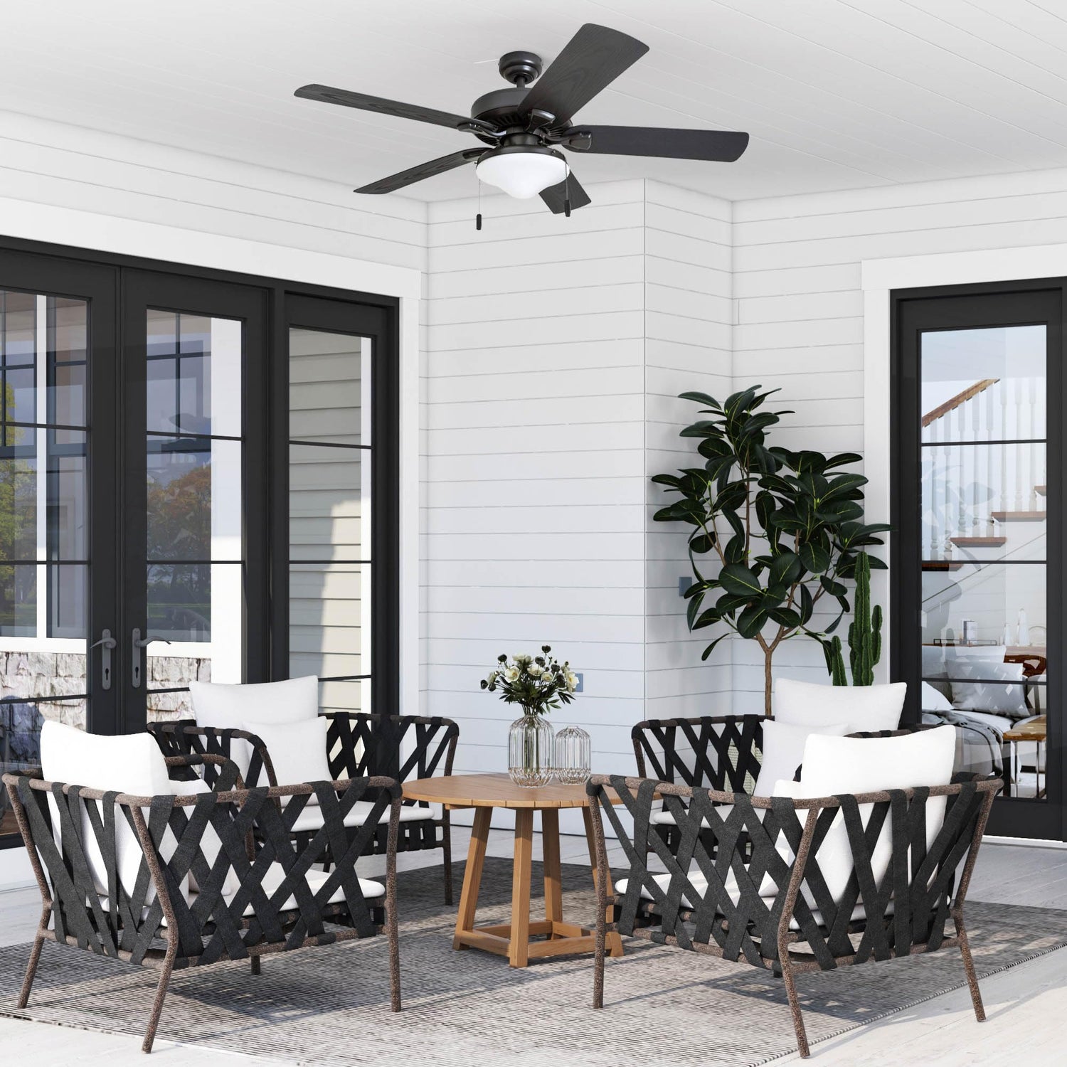 Honeywell Ceiling Fans Belmar 52 Inch Ceiling Fan With Light, Indoor/Outdoor Ceiling Fan with Pull Chain, LED Tri-Mount 5 Blade Design, ETL Damp Rated, Bronze (50512-01)