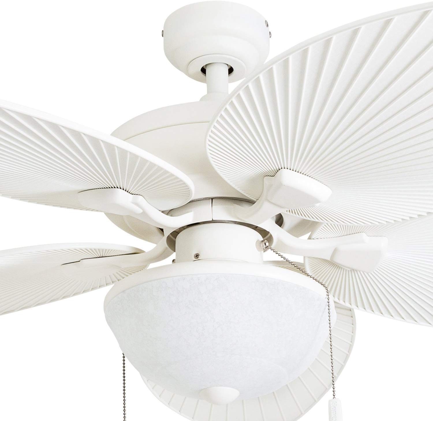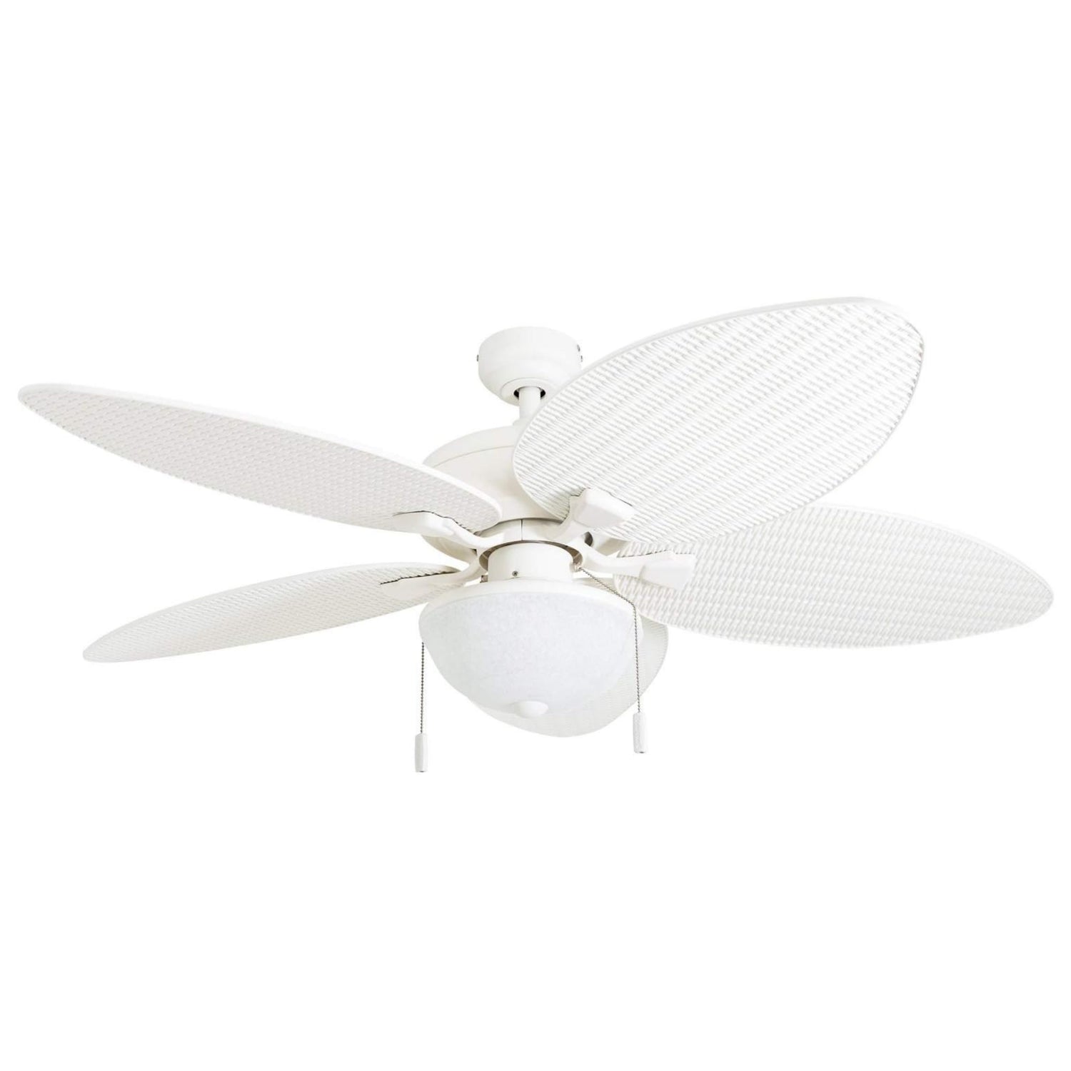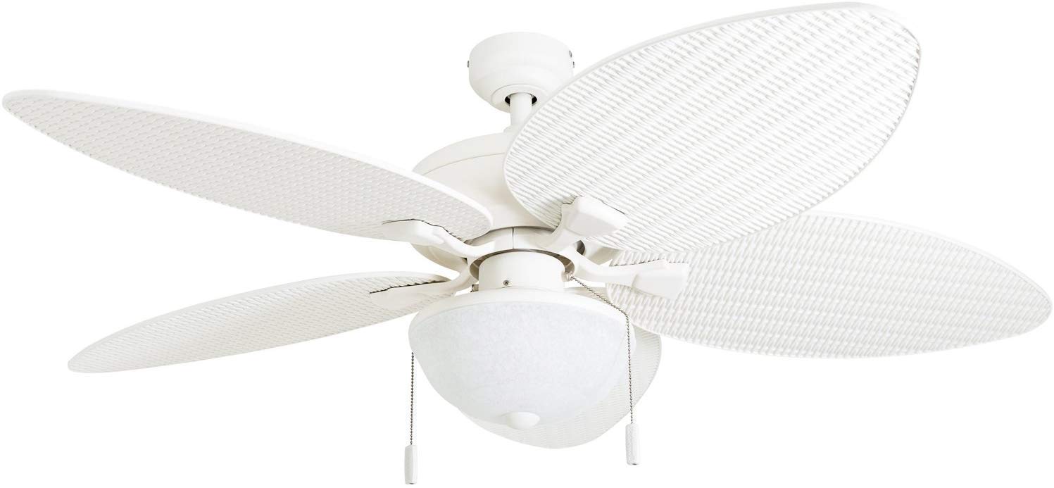 Honeywell Ceiling Fans Inland Breeze, 52 Inch Tropical Indoor Outdoor Ceiling Fan with Light, Pull Chain, Three Mount Options, Weather Resistant Blades - 50511-01 (White)