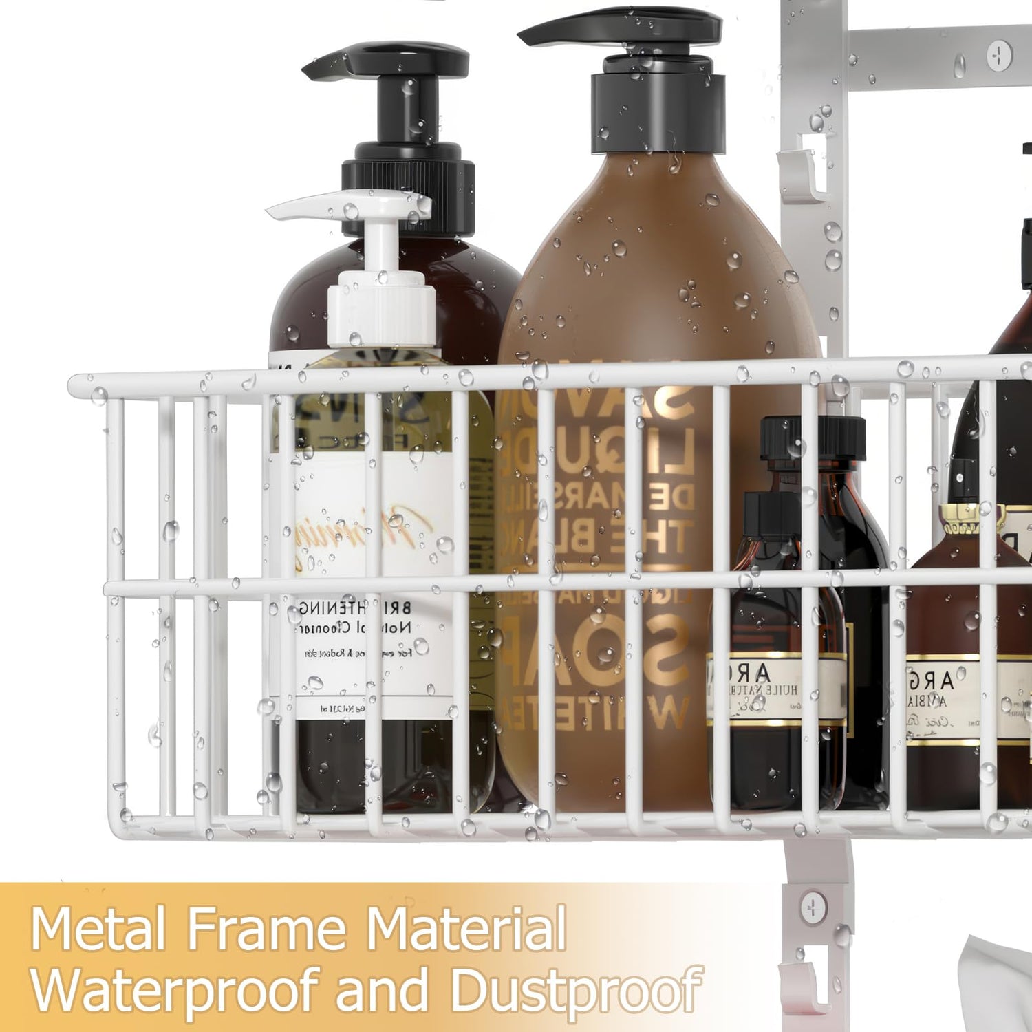 - [Sturdy and Durable]Our over the door storage is made of high-quality metal, so it can hold heavy items without bending or warping. Plus, we’ve included damage-free adhesive strips and double-sided tape to help you secure the rack firmly to your door for extra stability.