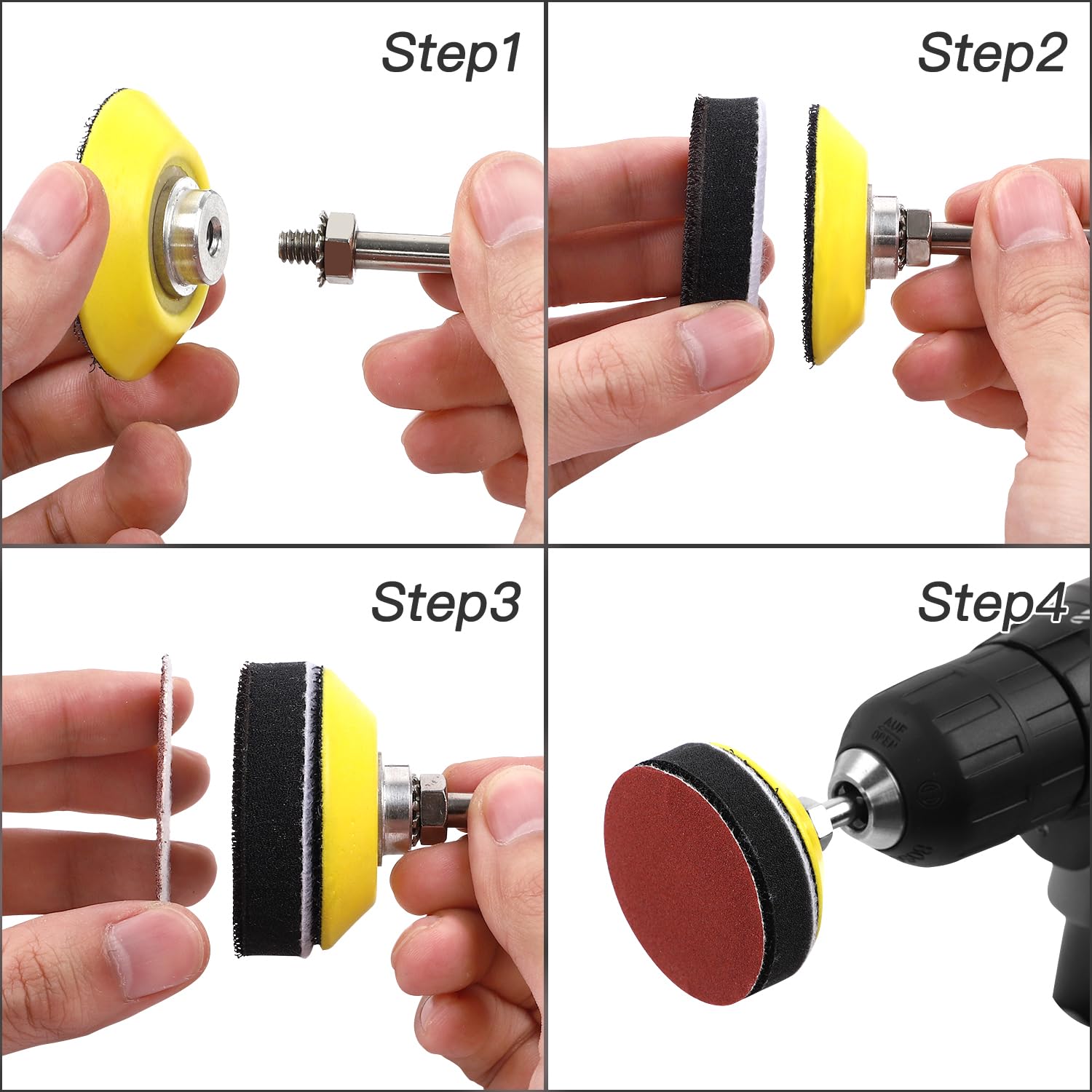 HongWay 300pcs 2 Inches Sanding Discs Pad Kit, Drill Sander Attachment for Sanding Grinder Rotary Tools with Backer Plate Shank and Soft Foam Buffering Pad, Sandpapers Includes 60-3000 Grit