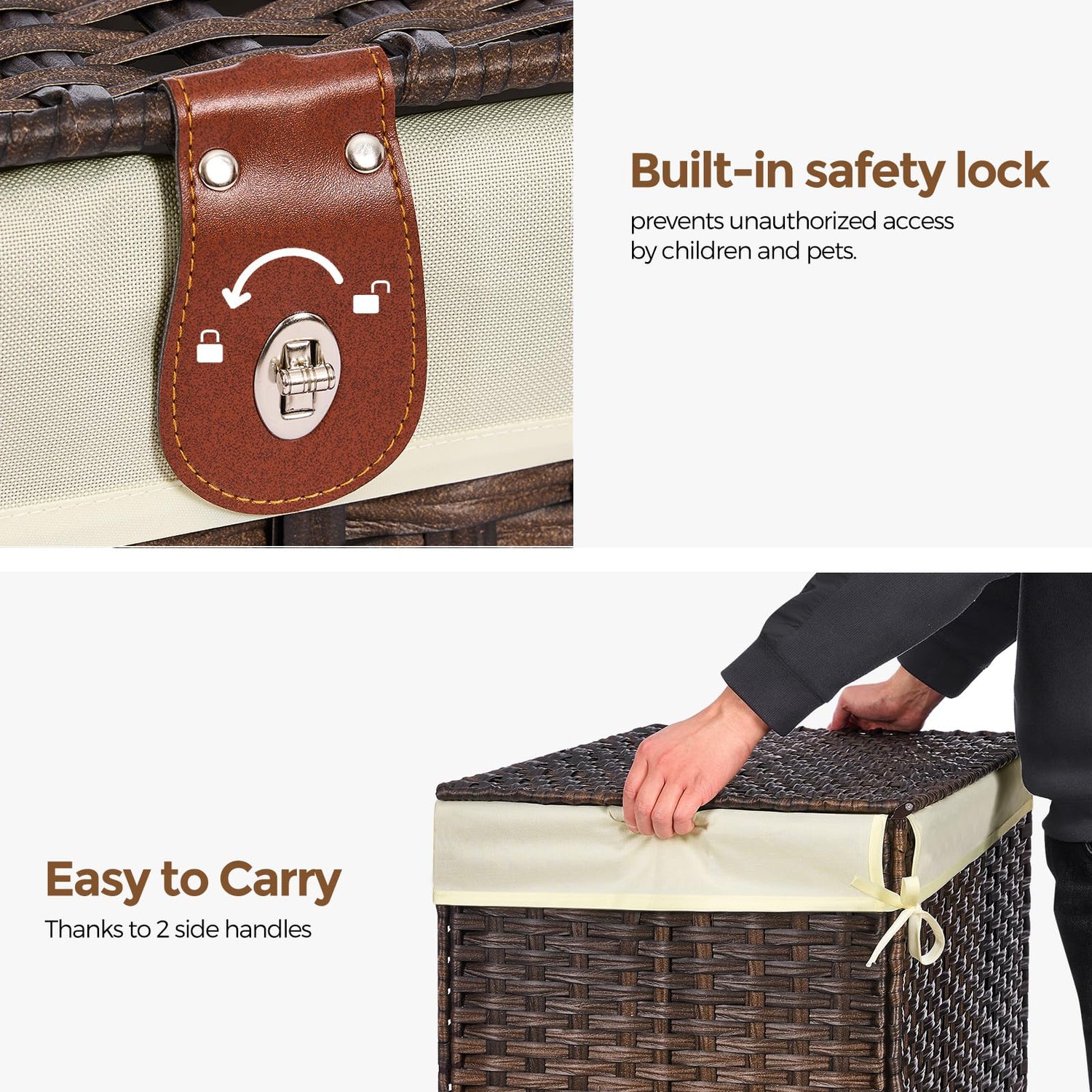 - [Convenient Lid Storage Basket] This storage basket features a user-friendly lid that easily opens with one hand, providing convenient access to clothing. Additionally, the lid with lock can block unpleasant odors, protect clothes from dust, and prevent access by children and pets.