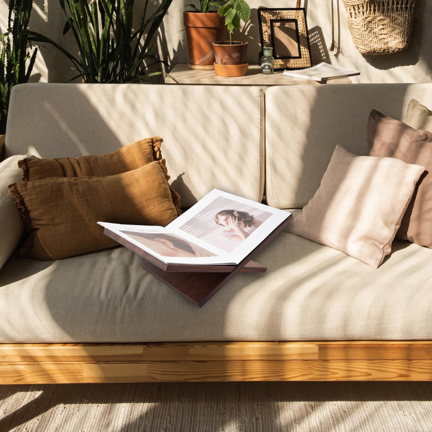 - TIRED OF THE STORE-BOUGHT BOOK SHELF? We are. This decorative wooden book display fits great in any tabletop stand, but can double also as a portable travel or camping accessory for an impressive insta-worthy picture!