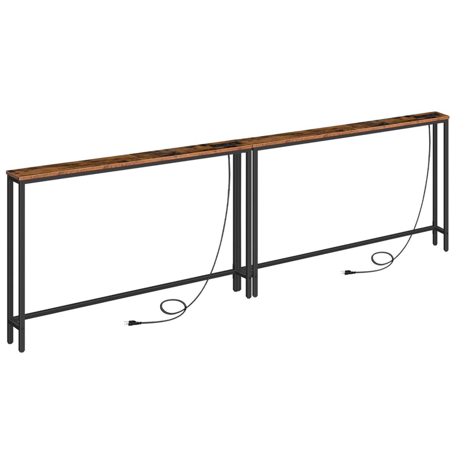 HOOBRO 2 Pack 5.9" Narrow Console Sofa Table with Power Outlets, 47.2" Long Behind Couch Table with Charging Station, Skinny Sofa Table for Living Room, Foyer, Rustic Brown BF15XGP201G1