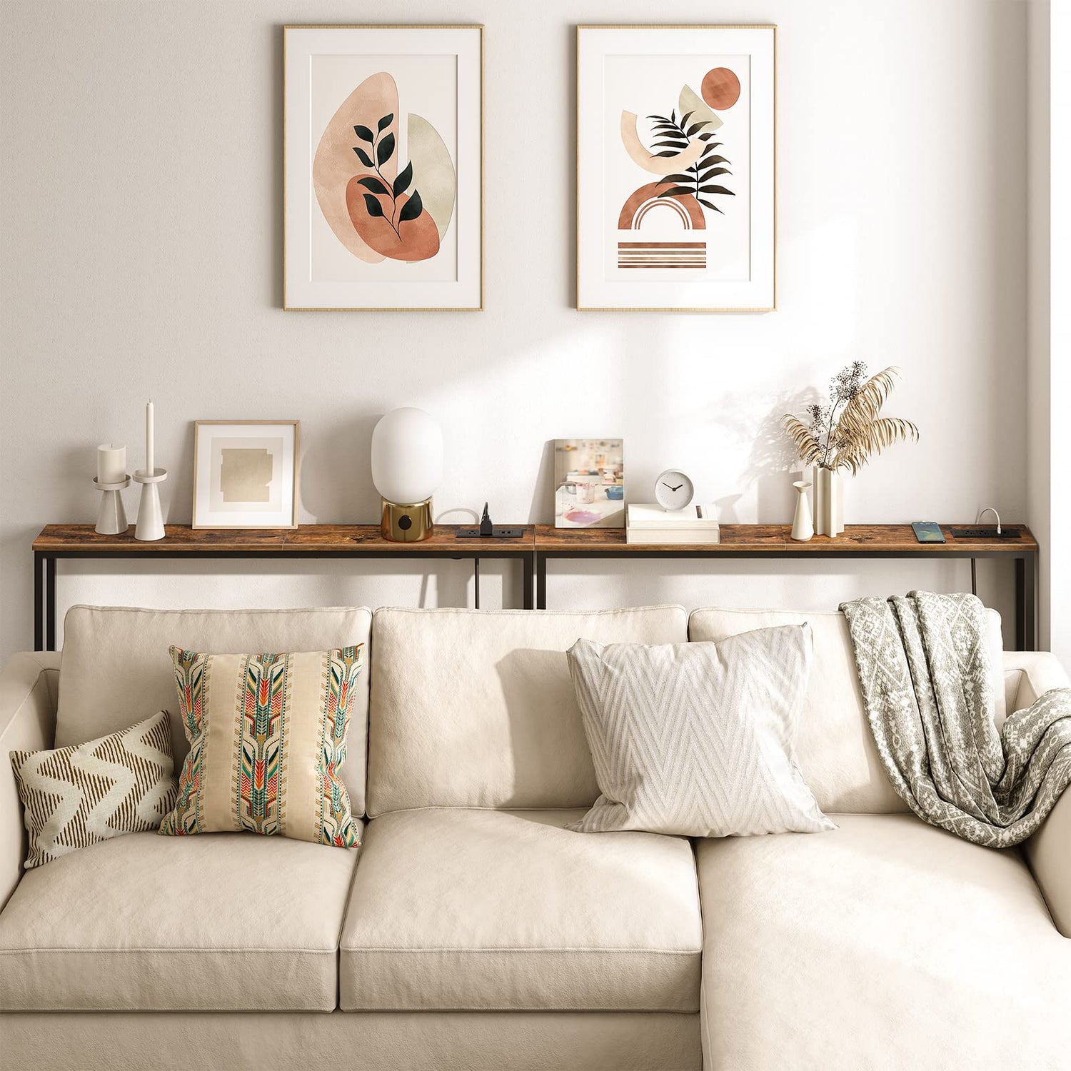 - Behind Couch Table with Outlets: The console table comes with built-in 2 plug outlets, 2 USB ports and a 59’’ power cord. With all the functions required for charging, the sofa table is ideal for your mobile phone, laptop, desk lamps or tablets