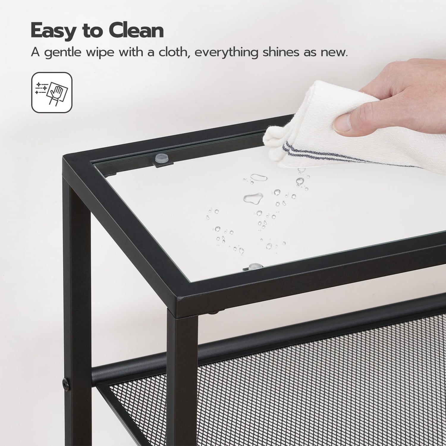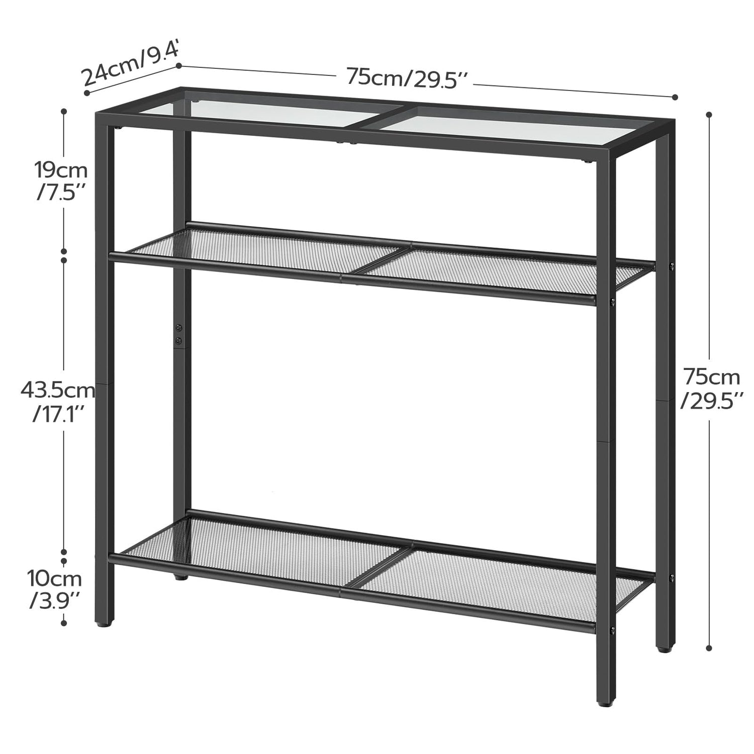 HOOBRO 29.5" Narrow Console Table, 3-Tier Tempered Glass Sofa Table, Small Side Table, Modern Entryway Table, for Entrance, Living Room, Foyer, Hallway Bedroom, Black BK21XG01G1