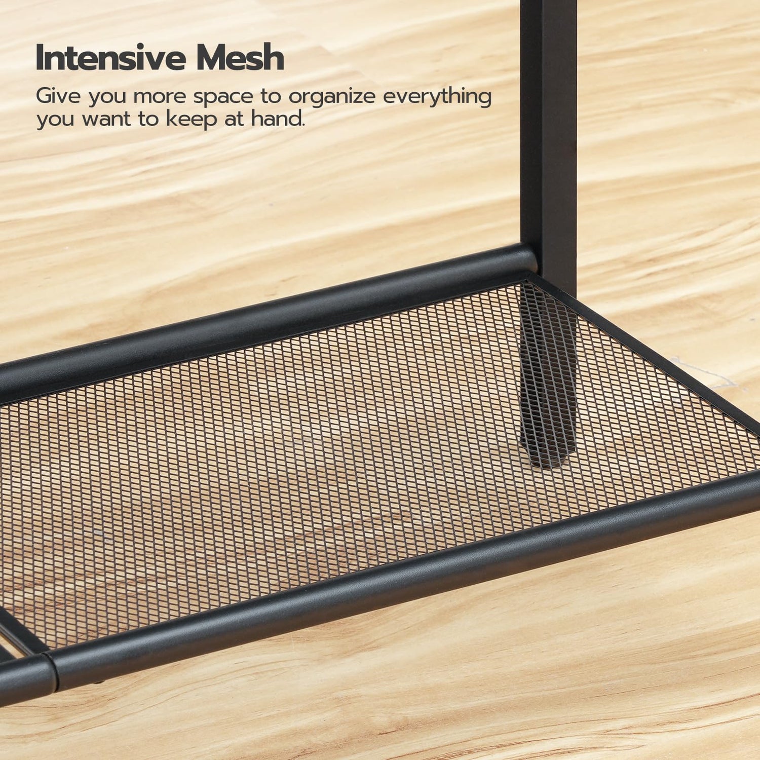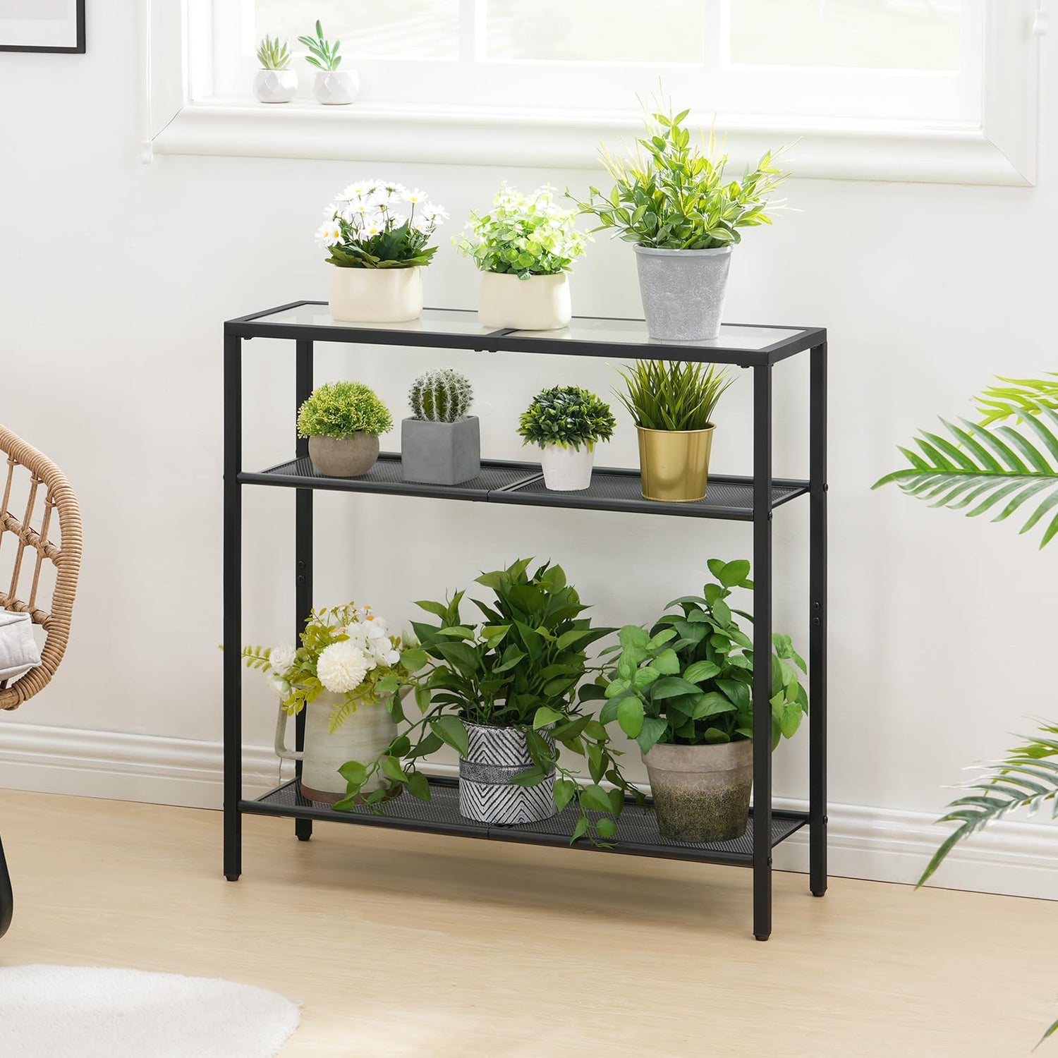 - 3-Tier Storage Space: This console table provides sufficient storage and display options with its wide top for potted plants, books, photo frames and other items. 2 mesh shelves reserve the good place to place storage baskets, shoes and gift boxes