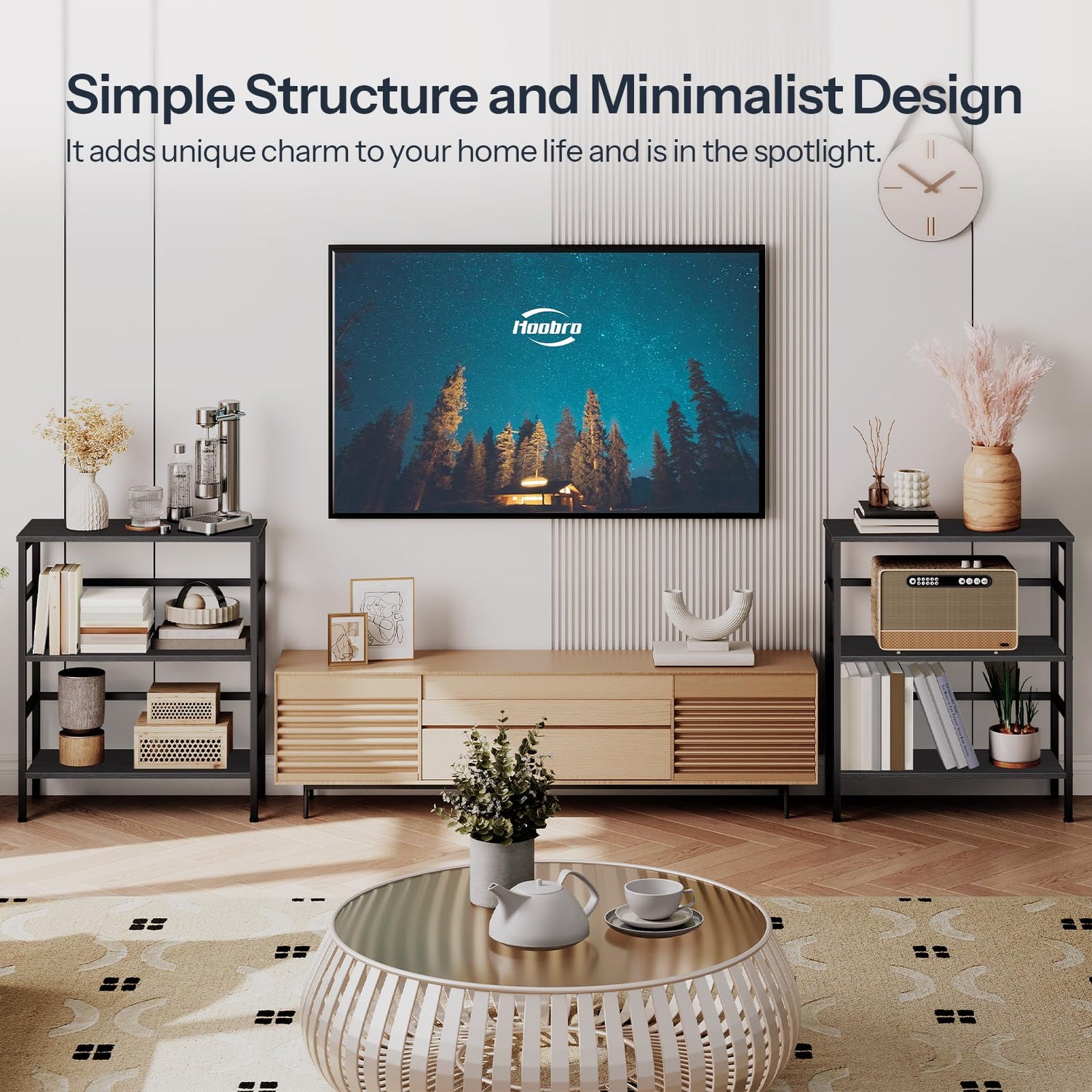 HOOBRO 3 Tier Bookshelf, Industrial Bookcase, Record Storage Rack with Side Fence, Wood Storage Shelf with Metal Frame, Rustic Open Display Shelf for Living Room, Bedroom, Black BB86CJ01G1