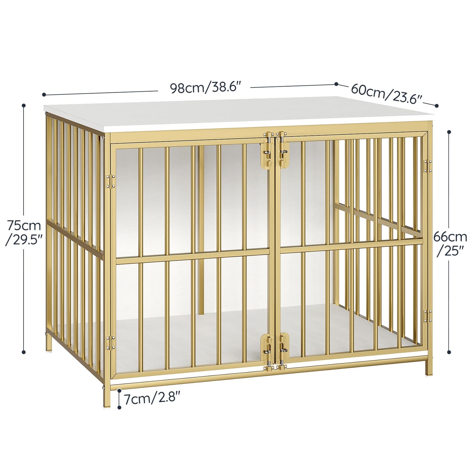 HOOBRO 38.6" Dog Crate Furniture, Wooden Indoor Dog Kennel, Decorative Dog Crate End Table, Chew-Resistant Heavy Duty Dog Crate for Small/Medium Dog, White and Gold DW100GW03