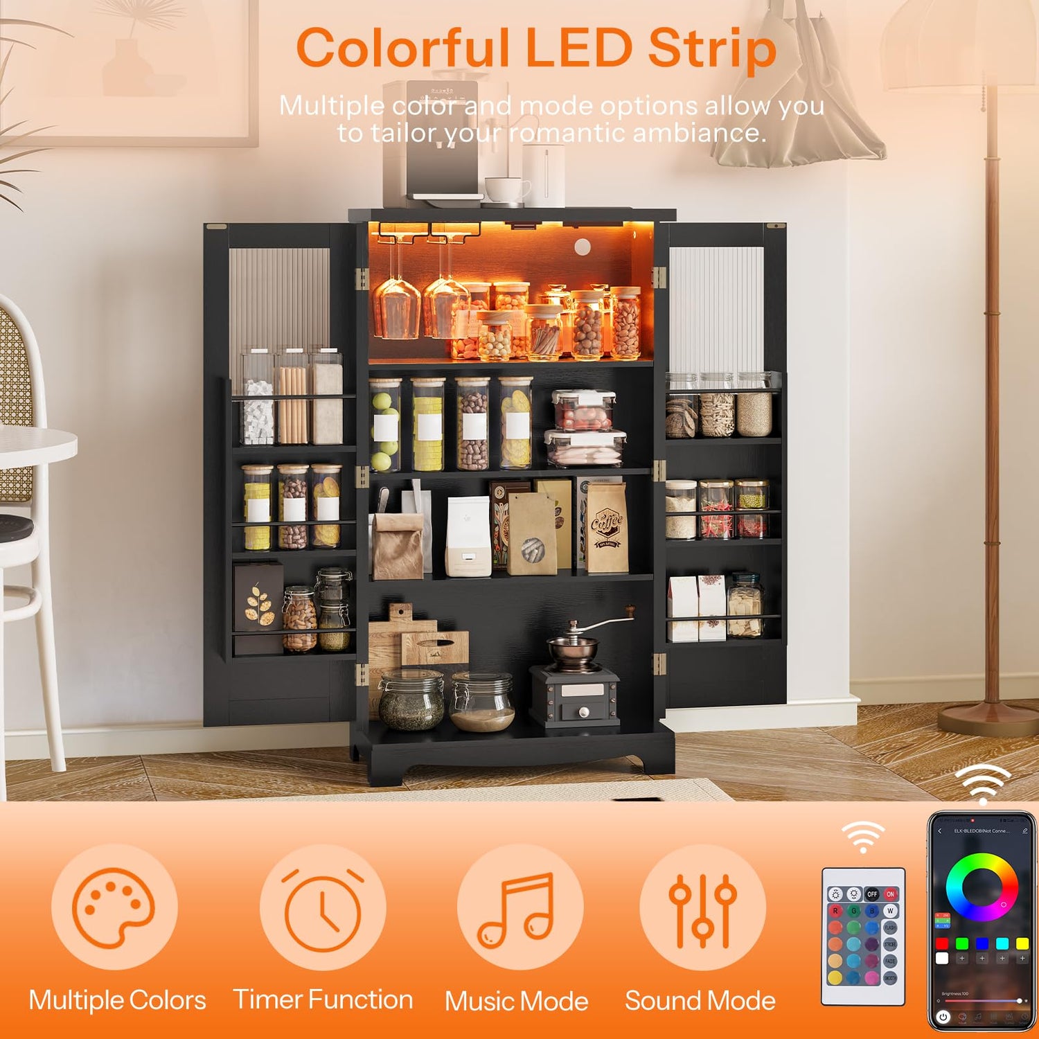 - Modern Elegance: The kitchen storage cabinet exudes stylish elegance, with classic black tone and the subtle allure of reeded acrylic, effortlessly fitting into various home decors. Pantry cabinet elevates kitchen style and adds a hint of mystery and grace to the space