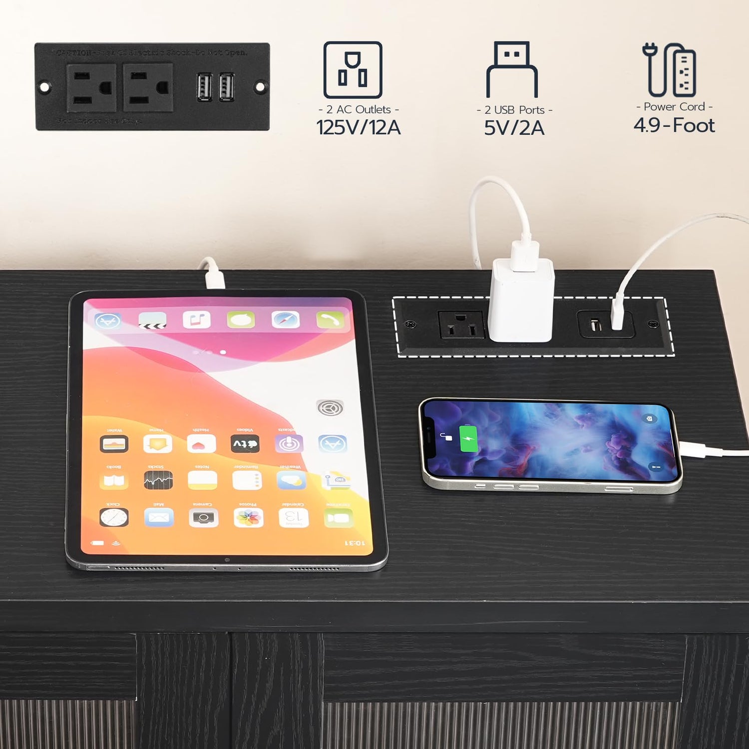 - With Charging and Smart Lighting: The pantry cabinet features 2 AC outlets and 2 USB ports for easy charging of your devices. Smart LED strip is controlled by remote or app to customize colors and brightness, sync to music for a vibrant light show