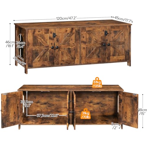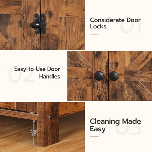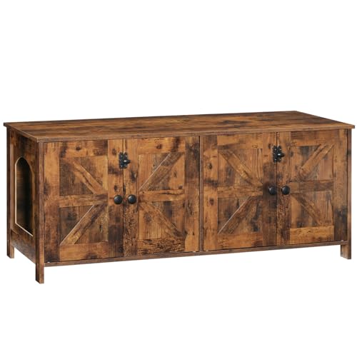 HOOBRO 47.2" Litter Box Enclosure for 2 Cats, Hidden Litter Box Furniture with Double Rooms, Wooden Cat Litter Box Enclosure, Dual Litter Box Design, Large Cat House for 2 Cats, Rustic Brown BF32MW01