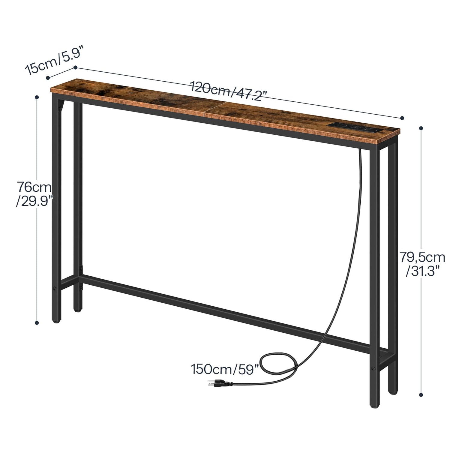 - Behind Couch Table with Outlets: The skinny console table comes with built-in 2 plug outlets, 2 USB ports and a 59" long power cord. With all the functions required for charging, the thin sofa table is ideal for your mobile phone, laptop, desk lamps or tablets