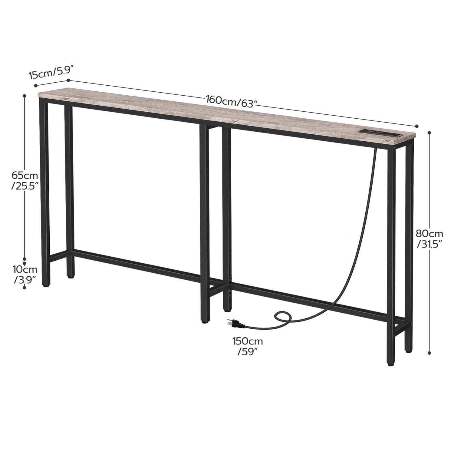 HOOBRO 5.9" Skinny Console Table with Charging Station, 63" Narrow Sofa Table with Power Outlets, Long Behind Couch Table, Slim Entryway Table for Hallway, Living Room, Greige and Black BG165UXG01
