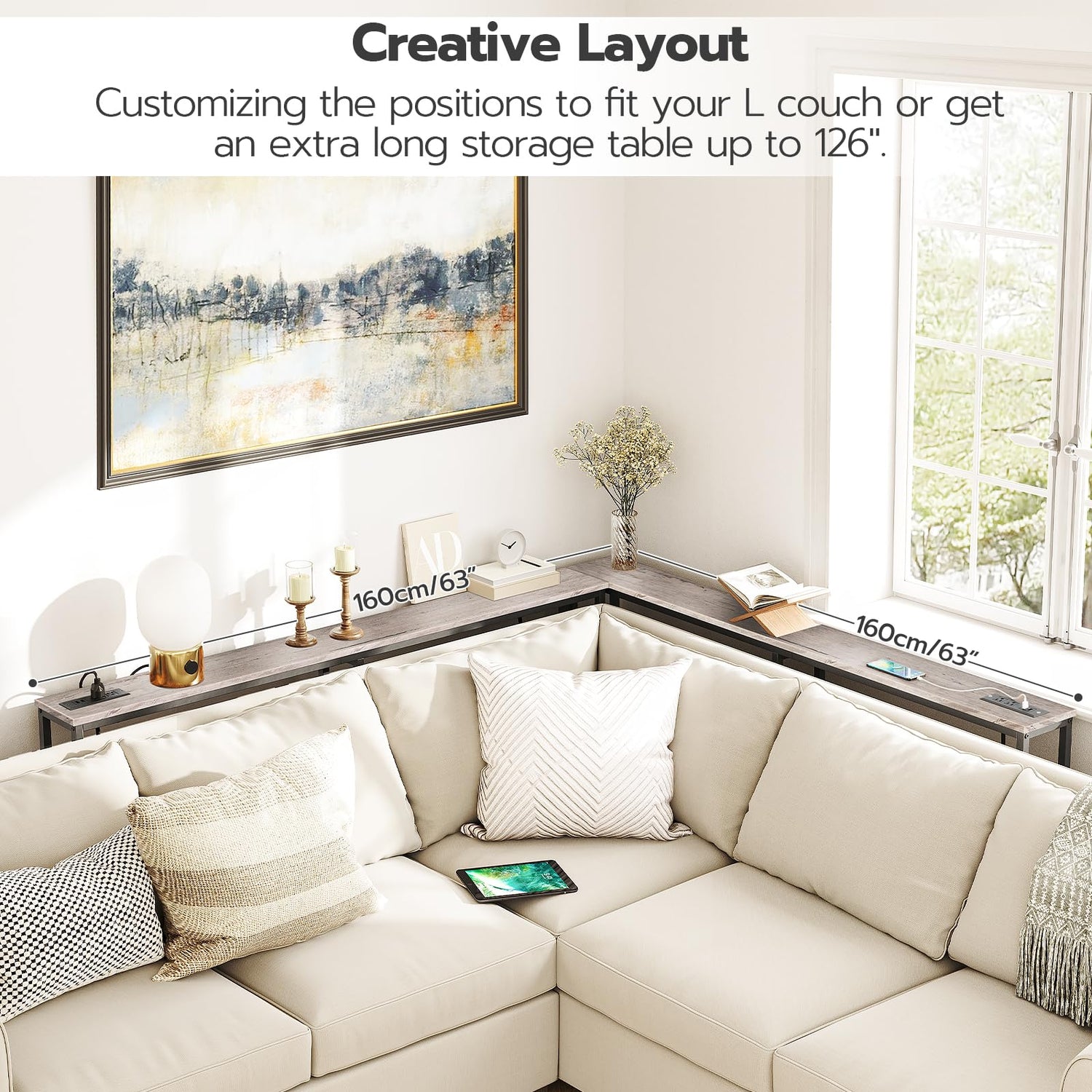 - Behind Couch Table with Outlets: The narrow console table comes with built-in 2 plug outlets, 2 USB ports and a 59" power cord. With all the functions required for charging, the sofa table is ideal for your mobile phone, laptop, desk lamps or tablets
