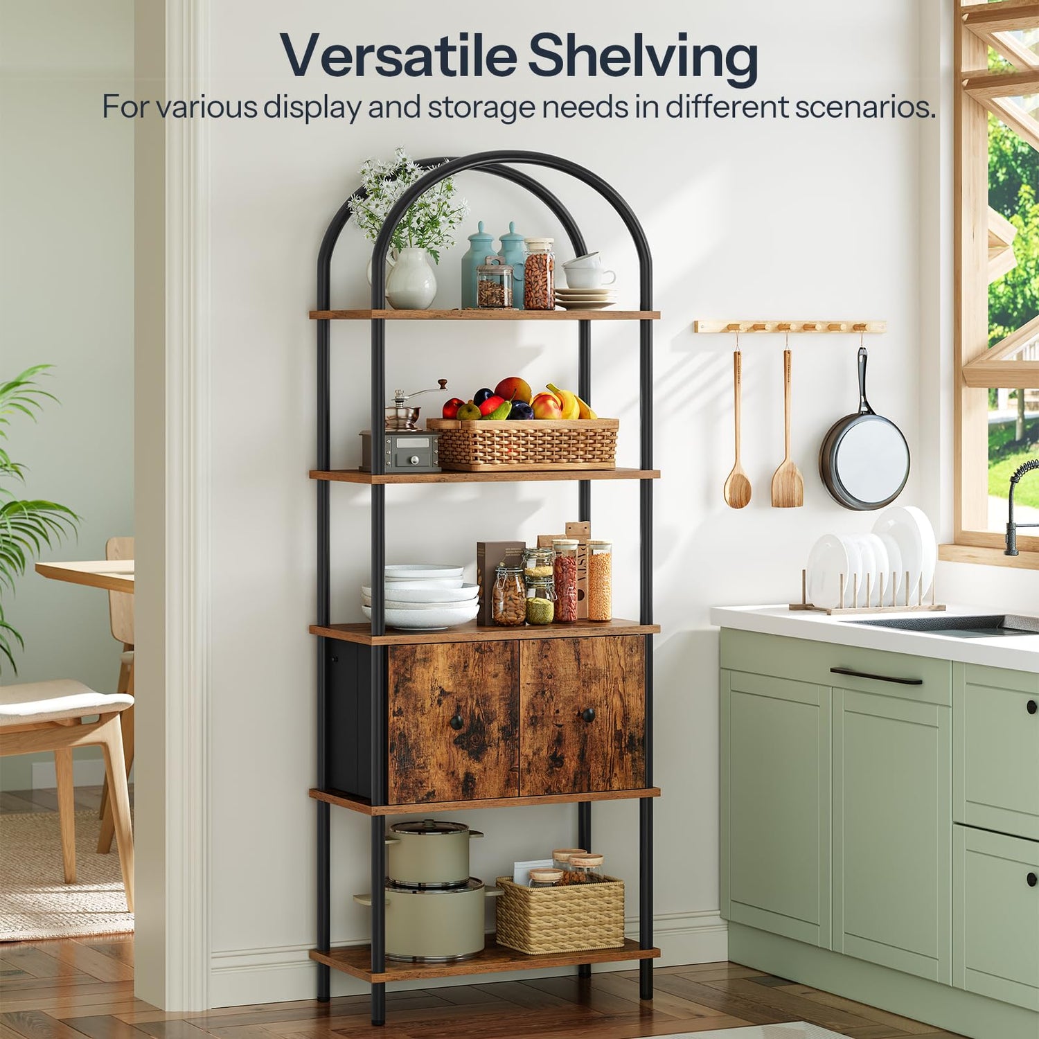 HOOBRO 5-Tier Bookshelf, Arched Bookcase with 2 Drawers, Tall Industrial Style Display Rack, Modern Standing Bookcase with Metal Frame for Office, Bedroom, Kitchen, Rustic Brown and Black BF175SJ01
