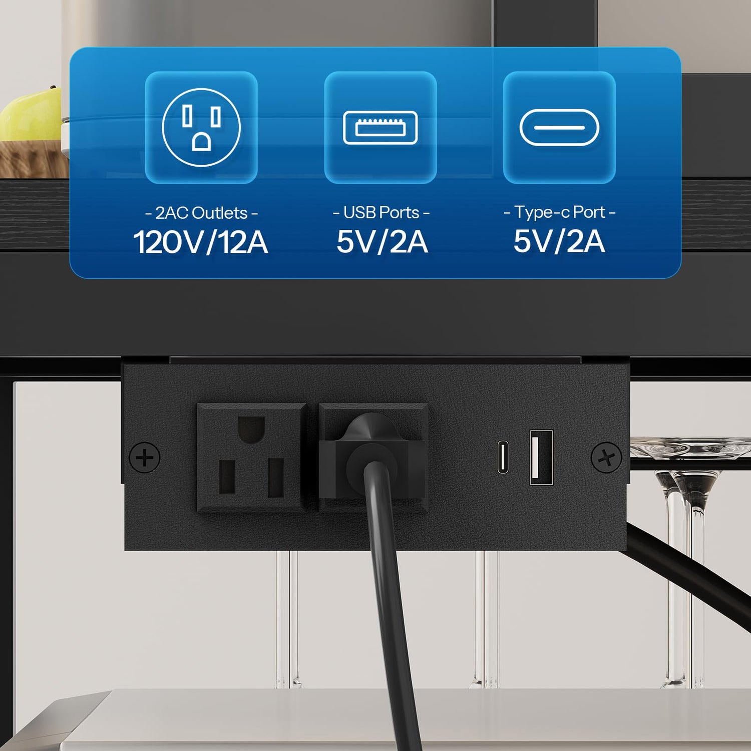 - Backers Rack with Power Outlet and LED Light Strip: The power strip with 2 AC outlets, 1 USB-A port, and 1 Type-C port, allows you to charge devices while using your microwave. The LED light strip with 16 colors and 5 modes lets you create the perfect baking ambiance