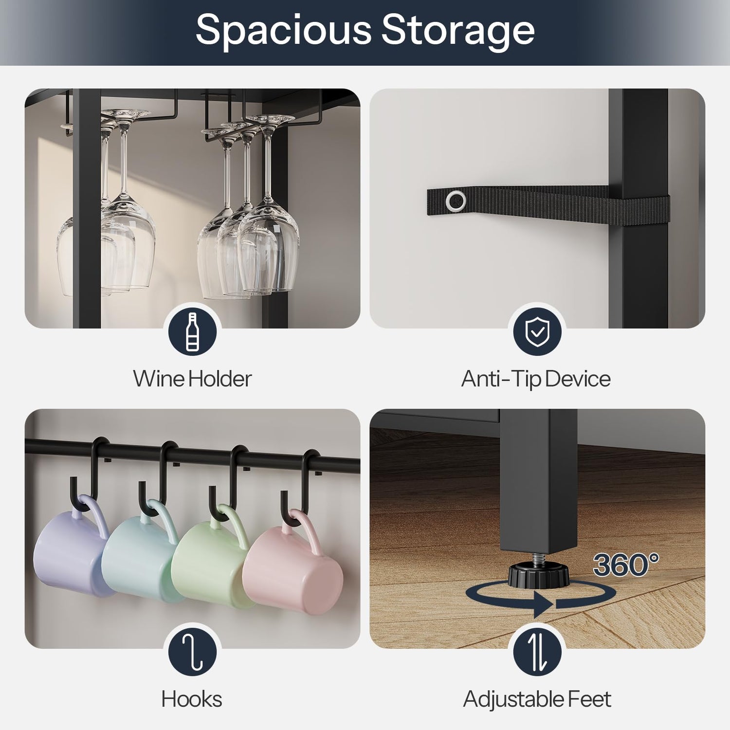 - Easy Assembly: The coffee bar comes with clearly labeled parts, step-by-step illustrated instructions and all necessary tools. Just follow the instruction, you can assemble it quickly and effortlessly and enjoy the versatile storage solution right away