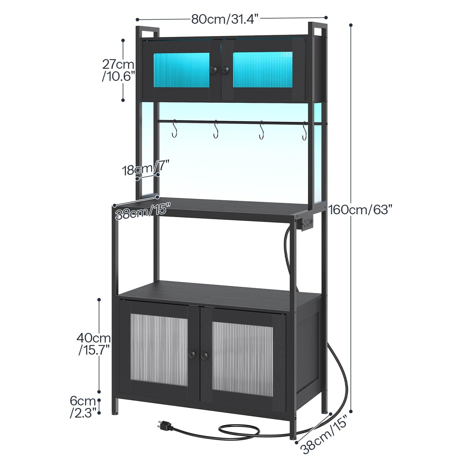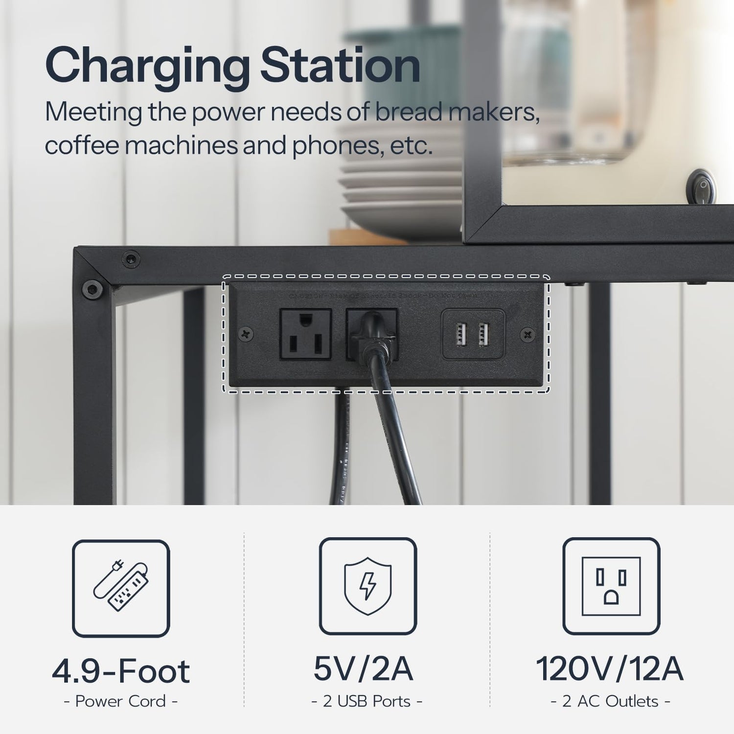 - Power Station & LED Light Strip: The bakers rack with power outlet has 2 AC outlets and 2 USB ports, allowing you to charge your phone, tablet, or other devices while using your microwave. The light strip has 28 colors, 10 brightness levels and 10 modes, so you can create the perfect lighting ambiance for your baking sessions