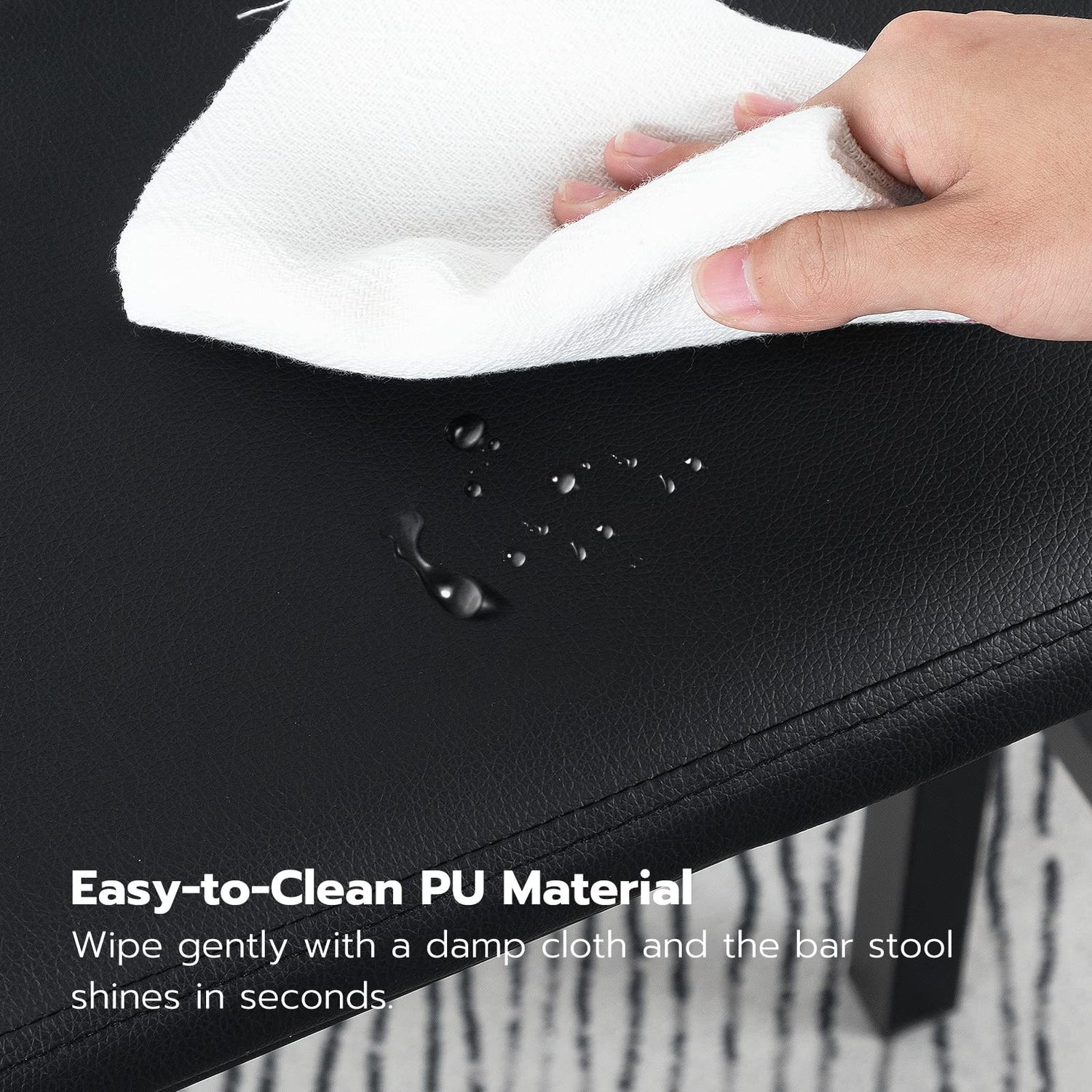 - Water and Stain Resistant: High-quality matte material gives you an amazing sense of touch. Different from linen, PU material is easier to clean water stains and oil dirt. Rub this bar stool gently with a damp cloth, and it will shine as new