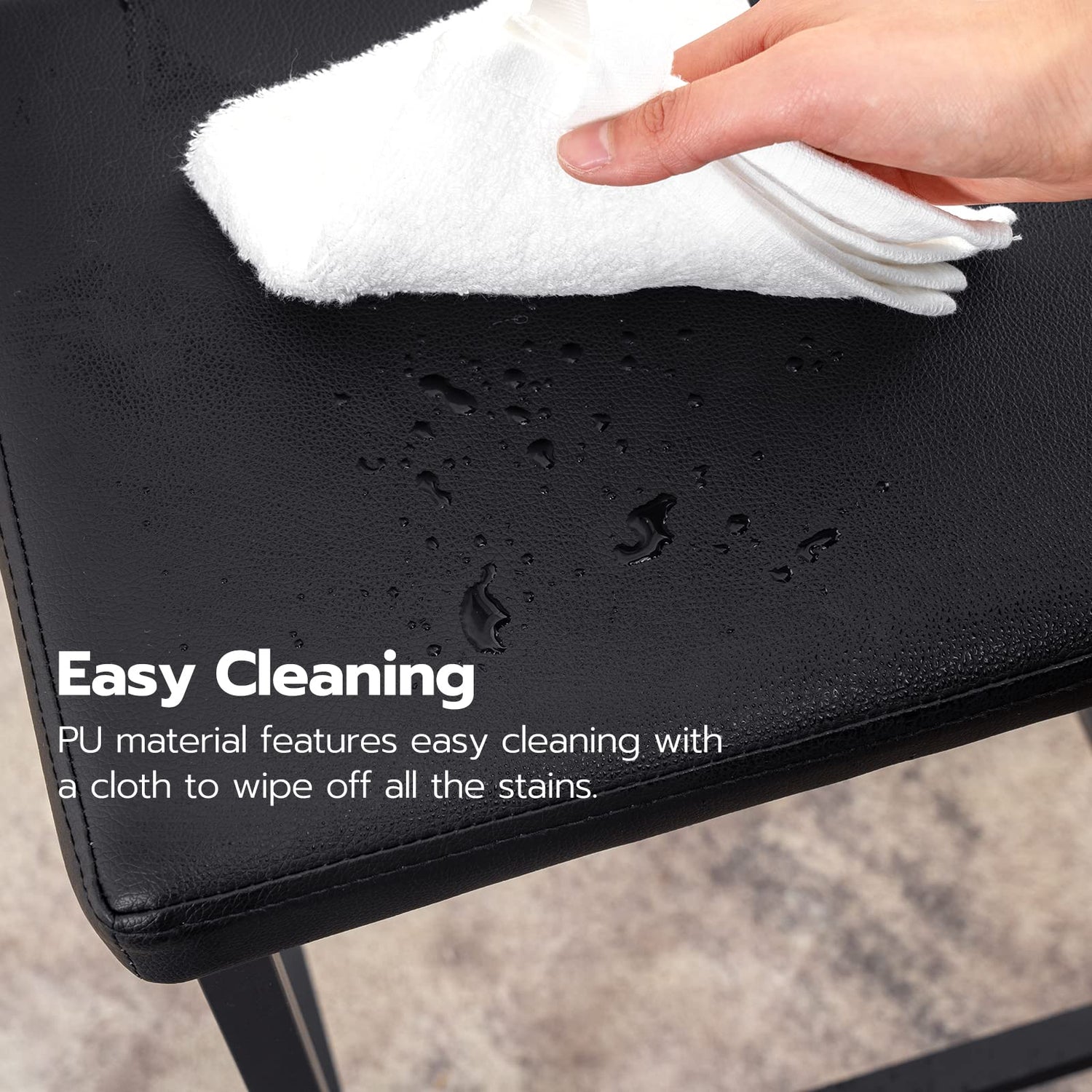 - Fashionable Shape: Each bar stool adopts a modern style and its curved seat is decorated with quality PU leather. The black soft cushion and square tubes complement each other, creating a seamless and low-key luxury