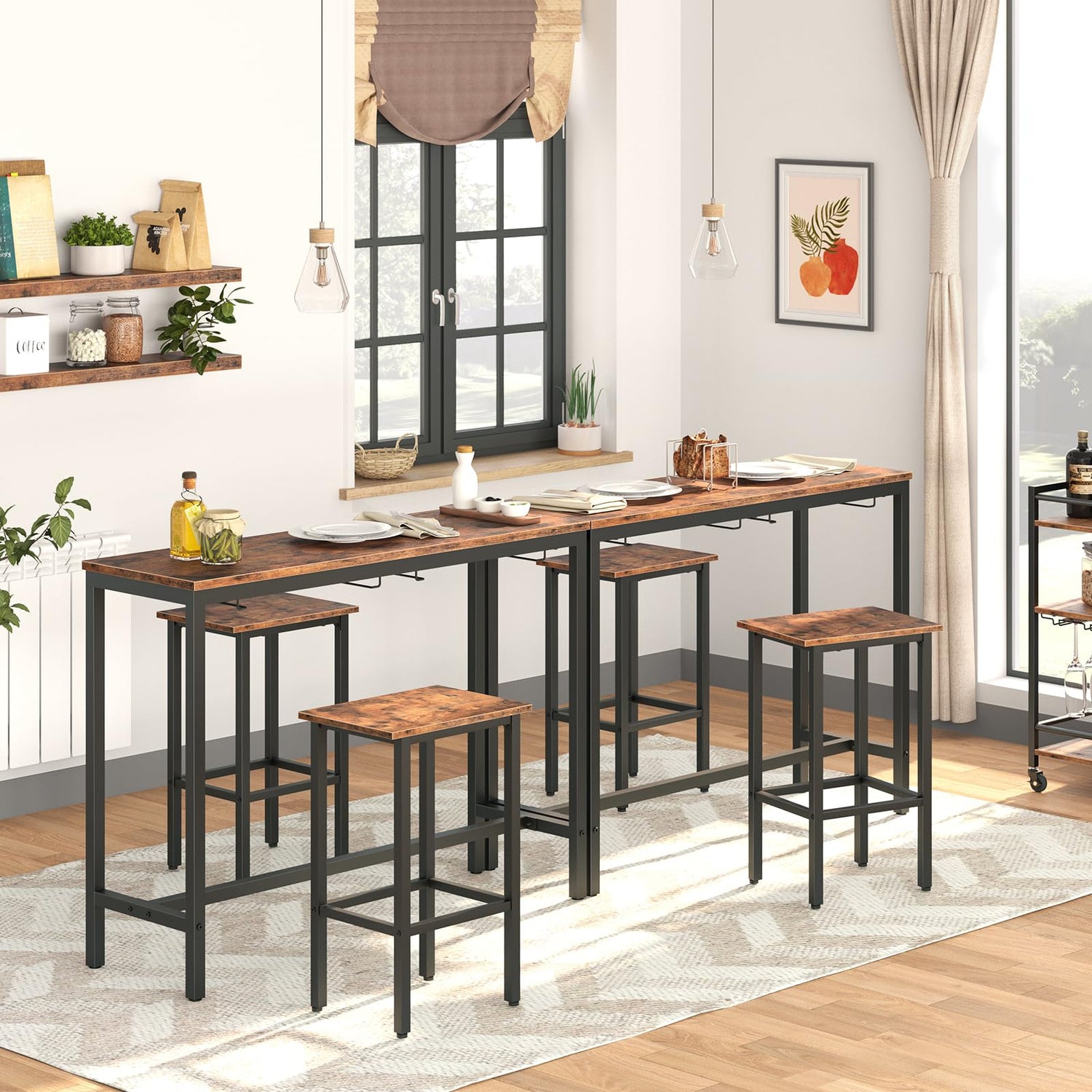 HOOBRO Rustic Brown Bar Table Set with Stools - Space-Saving Pub Dining Solution