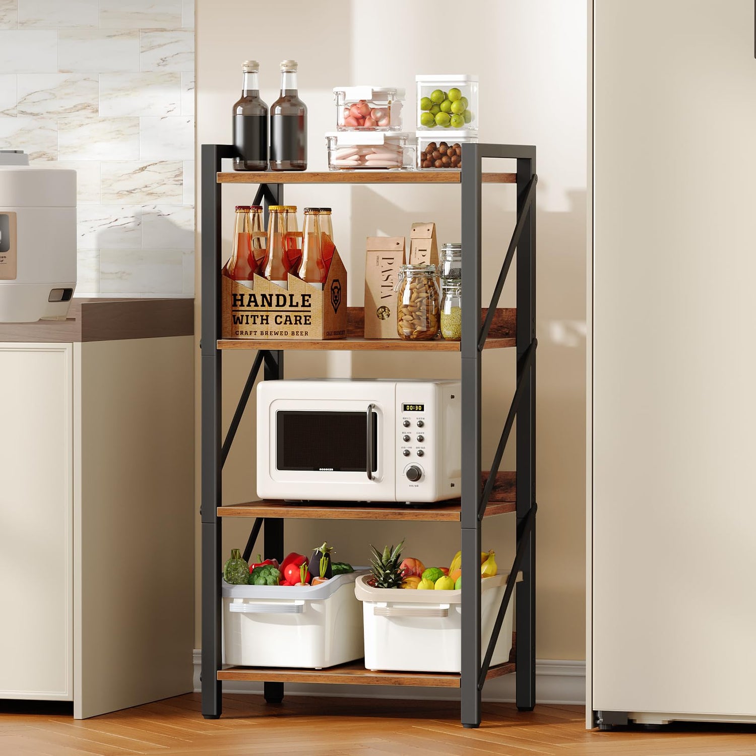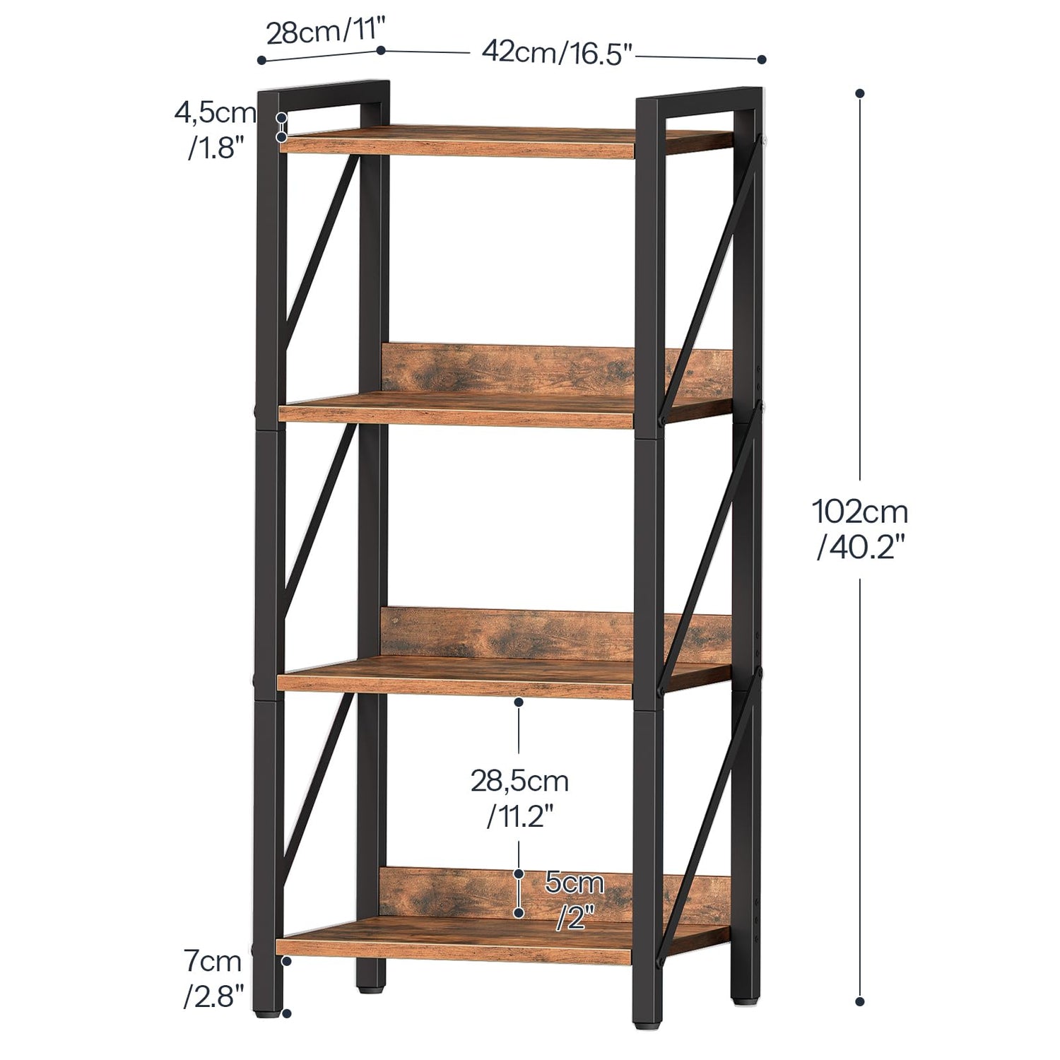HOOBRO Bookshelf, 4-Tier Industrial Bookcase, Book Shelf Storage Organizer, Small Bookshelf with Metal Frame for Living Room, Bedroom, Home Office, Kitchen, Rustic Brown and Black BF40SJ01