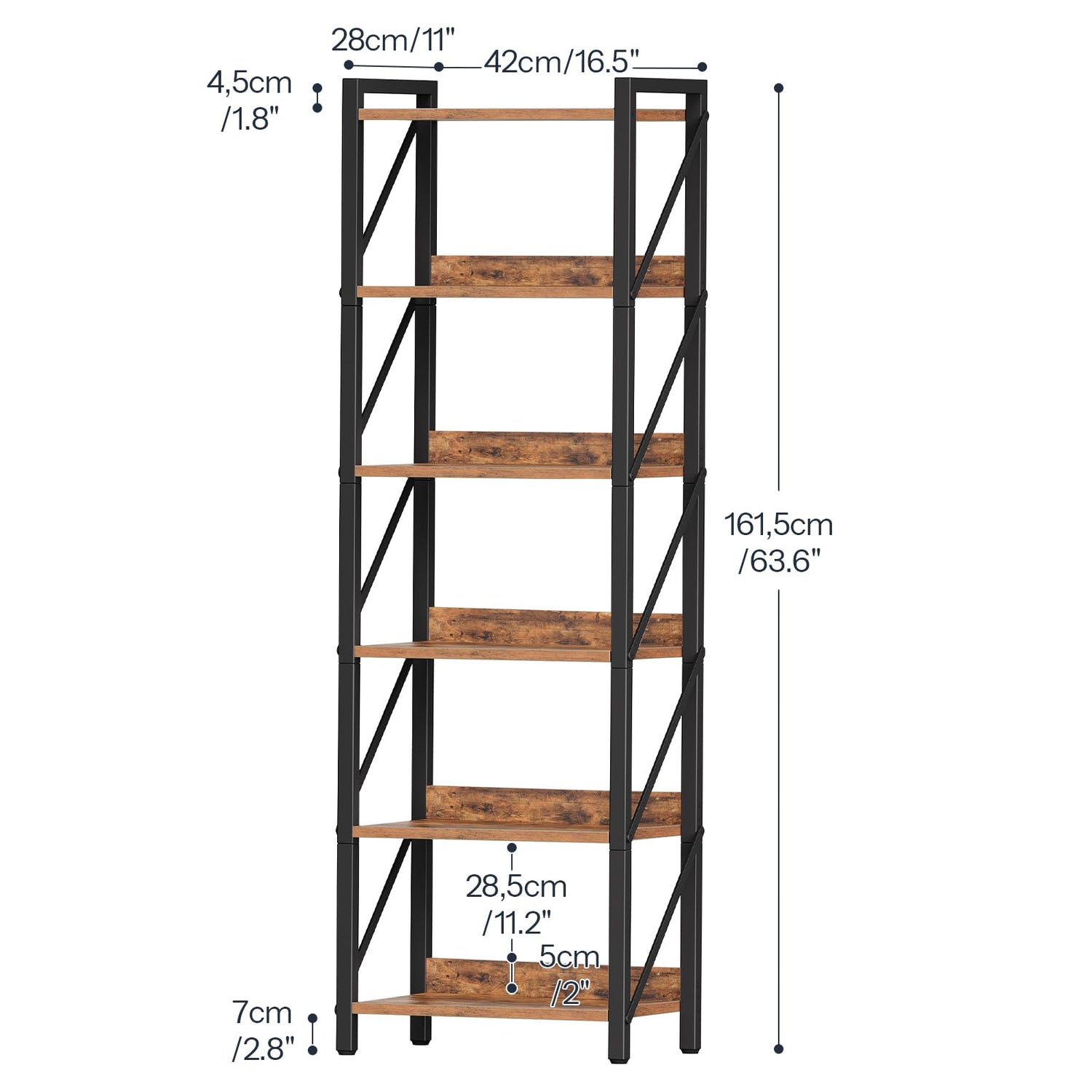 - Spacious Storage: Measuring 16.5''L x 11''W x 63.6''H, the 6-tier bookshelf makes full use of vertical space. It provides ample room for storing and displaying books and decorative accents, keeping your space tidy with minimal floor footprint