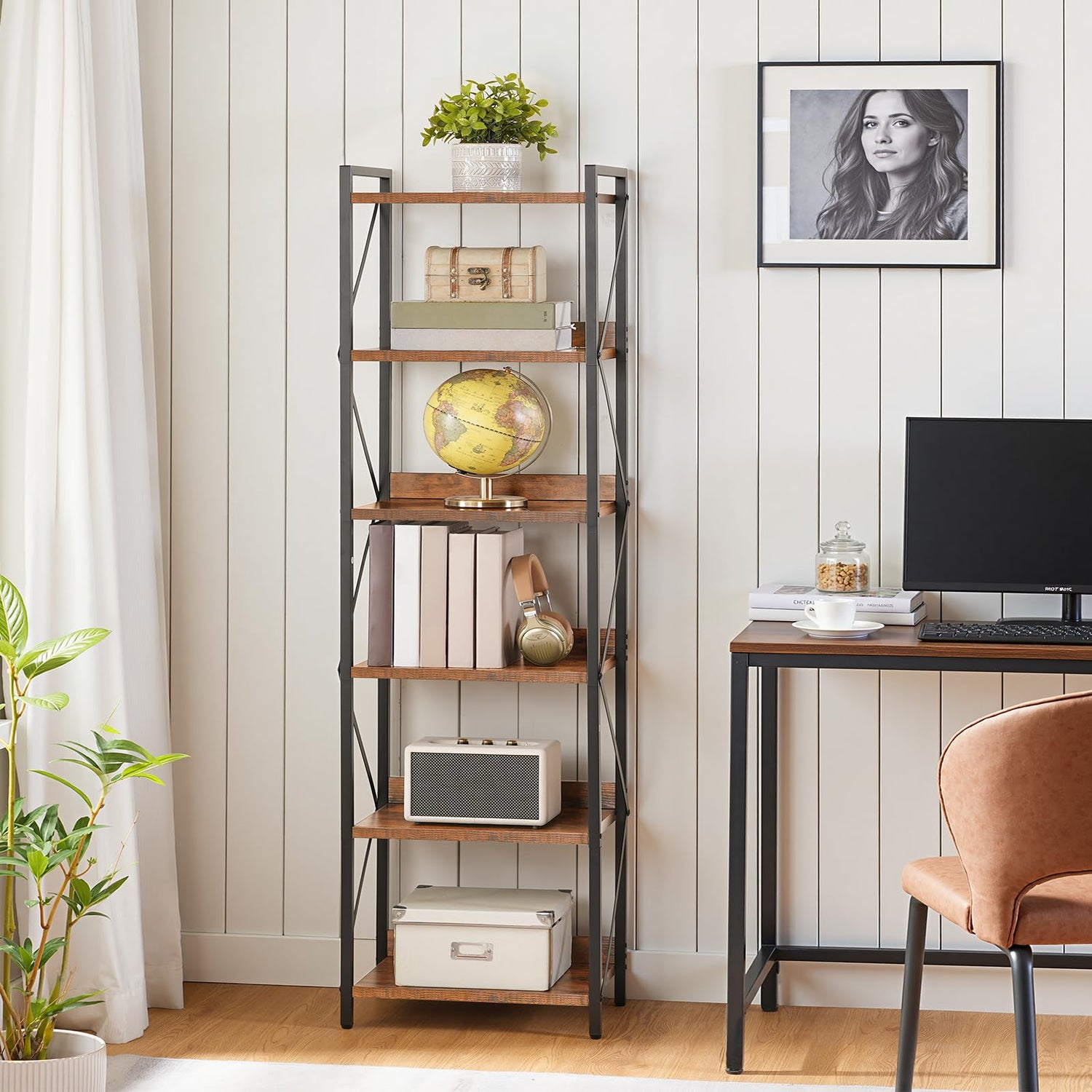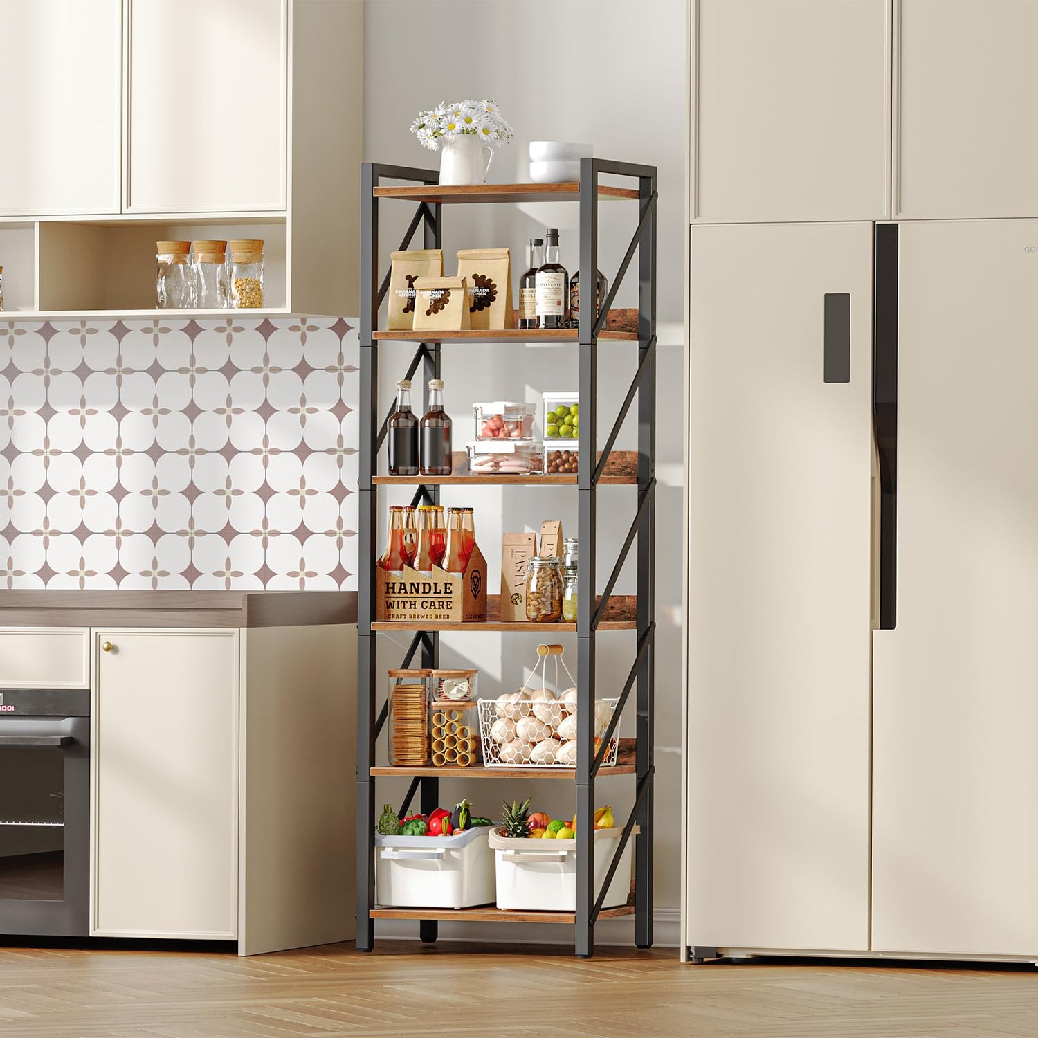 HOOBRO Bookshelf, 6-Tier Industrial Bookcase, Book Shelf Storage Organizer, Tall Bookshelf with Metal Frame for Living Room, Bedroom, Home Office, Kitchen, Rustic Brown and Black BF72SJ01