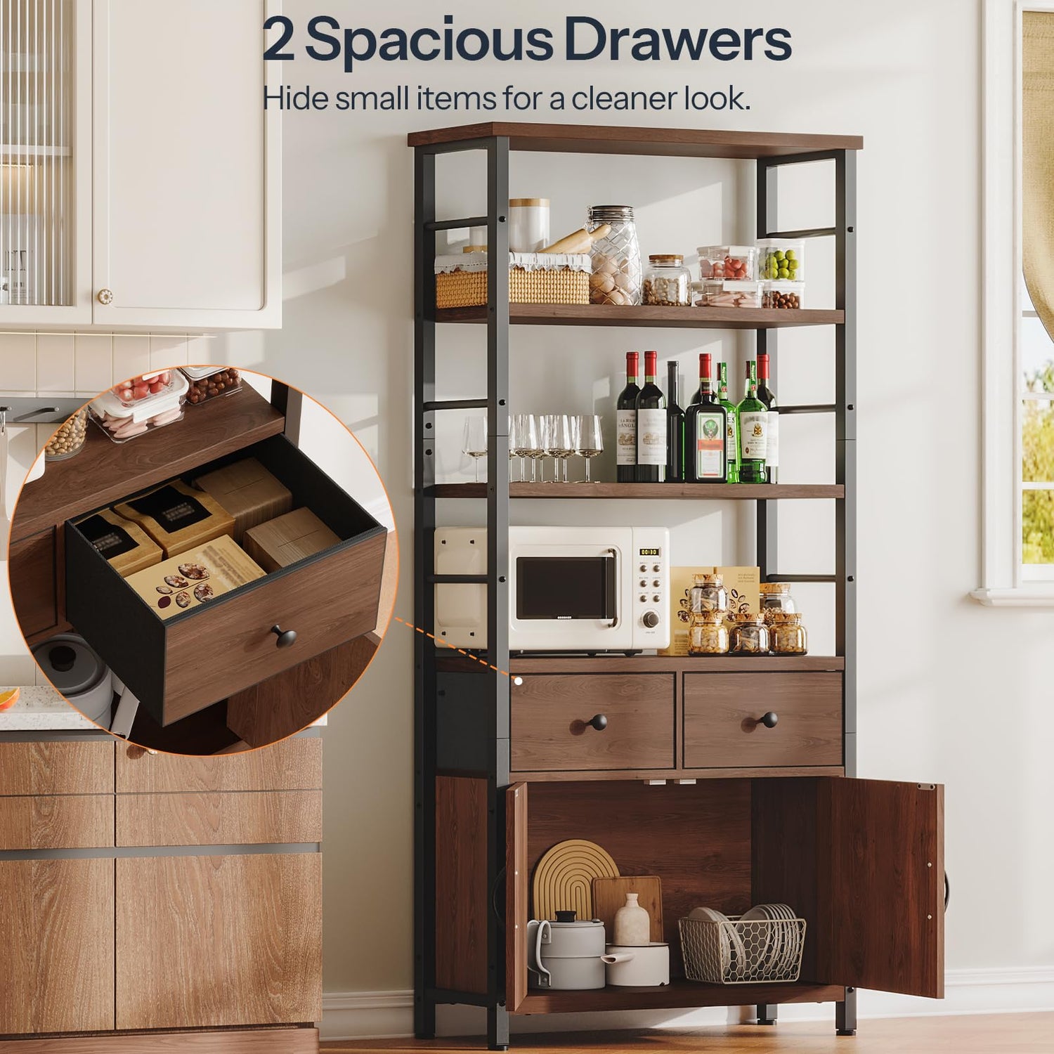 HOOBRO Bookshelf with Doors, Rustic Bookshelf with Drawers, Industrial Display Standing Shelf Units, Wooden and Metal Storage Shelf for Living Room, Home Office, Dining Room, Walnut and Black BH75SJ01