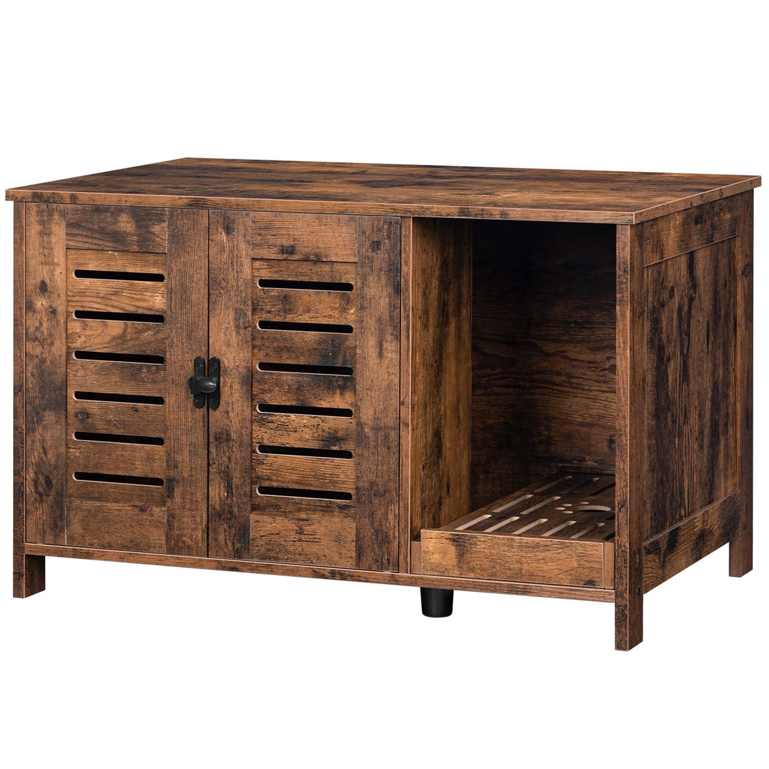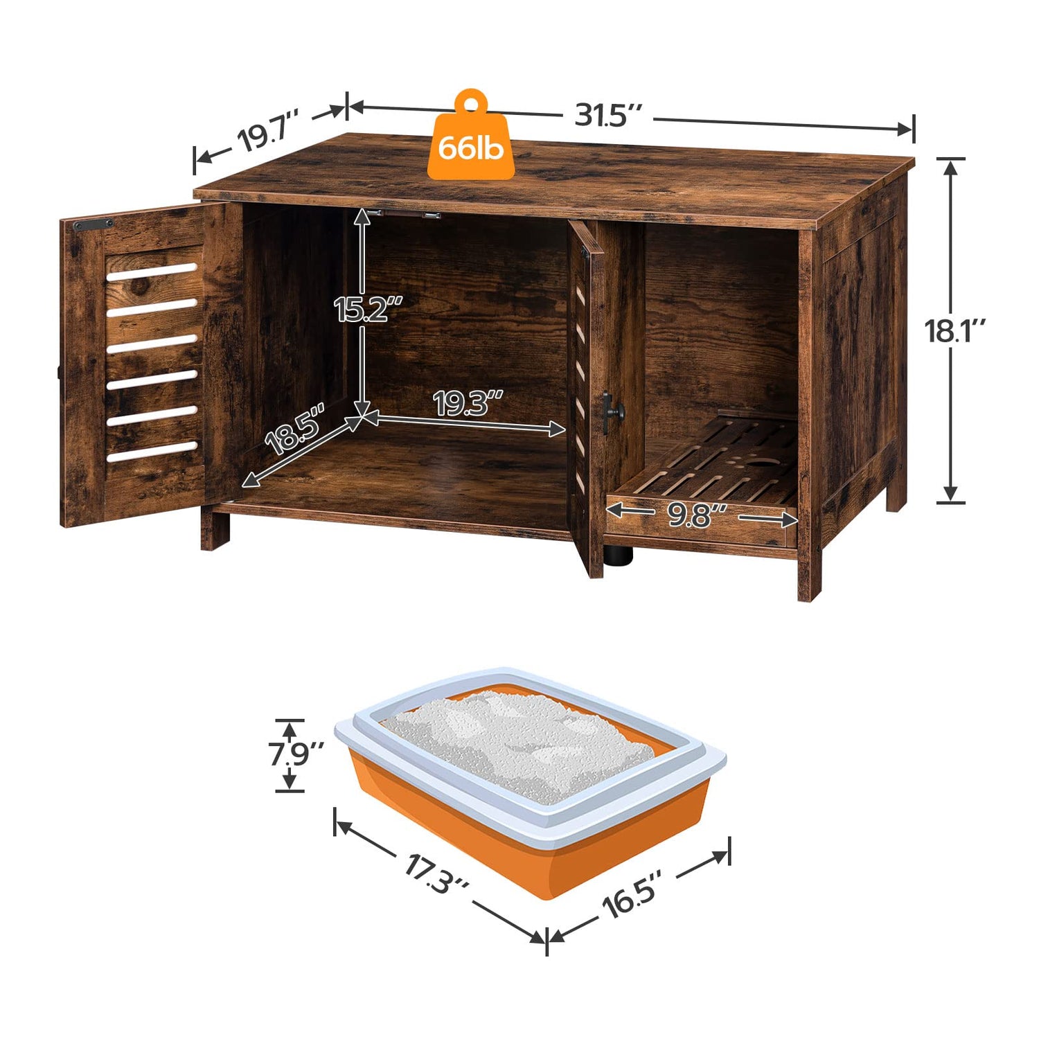 Details: Are you still worried about not being able to secretly hide the messy cat litter box? HOOBRO cat litter box enclosure will be what you are looking for. It can hide cat litter boxes or pet beds and unpleasant smells, and build a comfortable, clean, and odorless home for cats. It is an atmospheric and stylish way and blends perfectly with your other decorations. If you love your pet, do not hesitate to give it a warm and comfortable home! Specifications: - Color: Rustic Brown - Material: Particleboard - Size: 31.5 x 19.7 x 18.1 inches (L x W x H) (80 x 50 x 46 cm) - Weight: 32 lb (14.5 kg) Package Contents: - 1 x Cat Litter Box Enclosure - 1 x Accessory Kit - 1 x Instructions HOOBRO Notes: - Please Attention about children is not allowed to stand or climb the cat litter box enclosures to avoid potential injury caused by toppling.