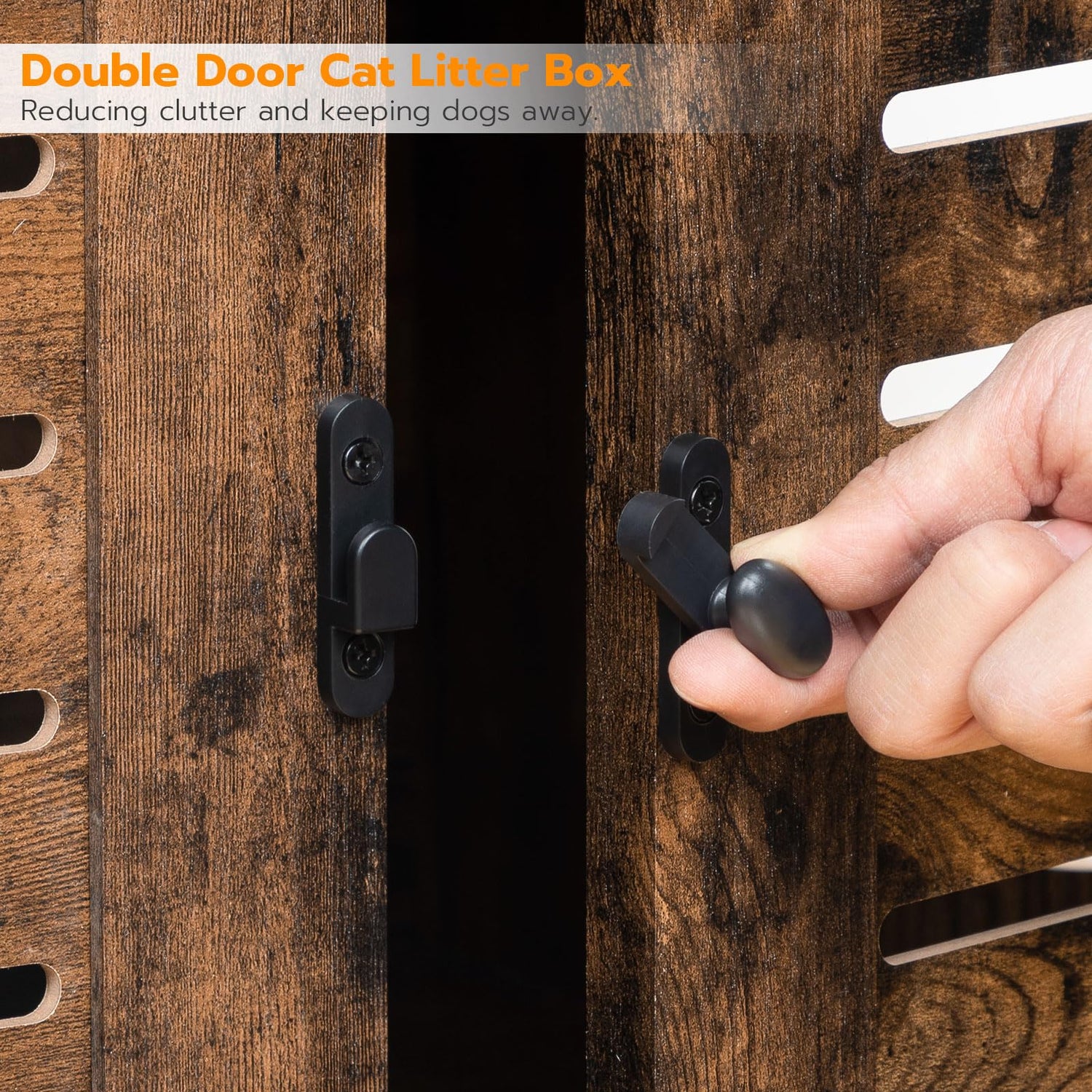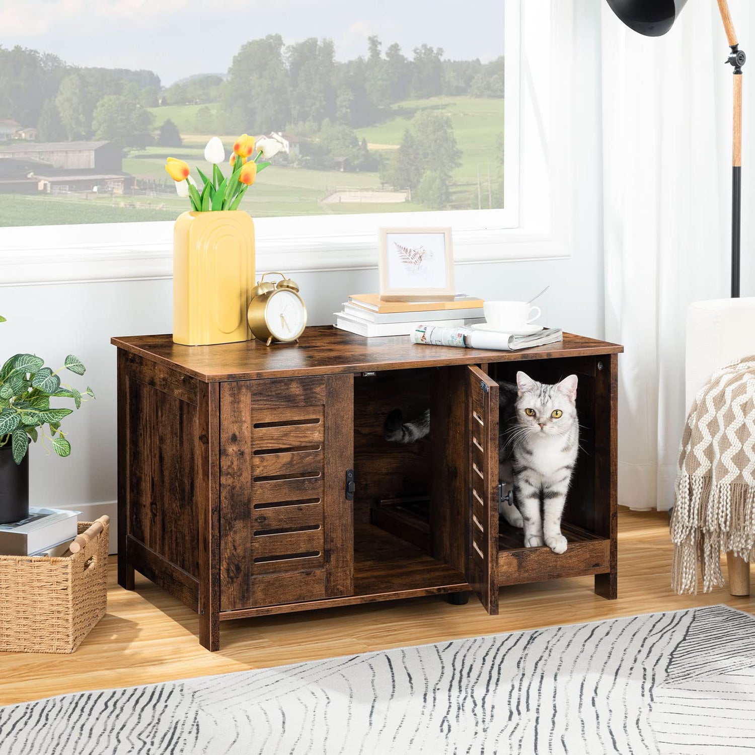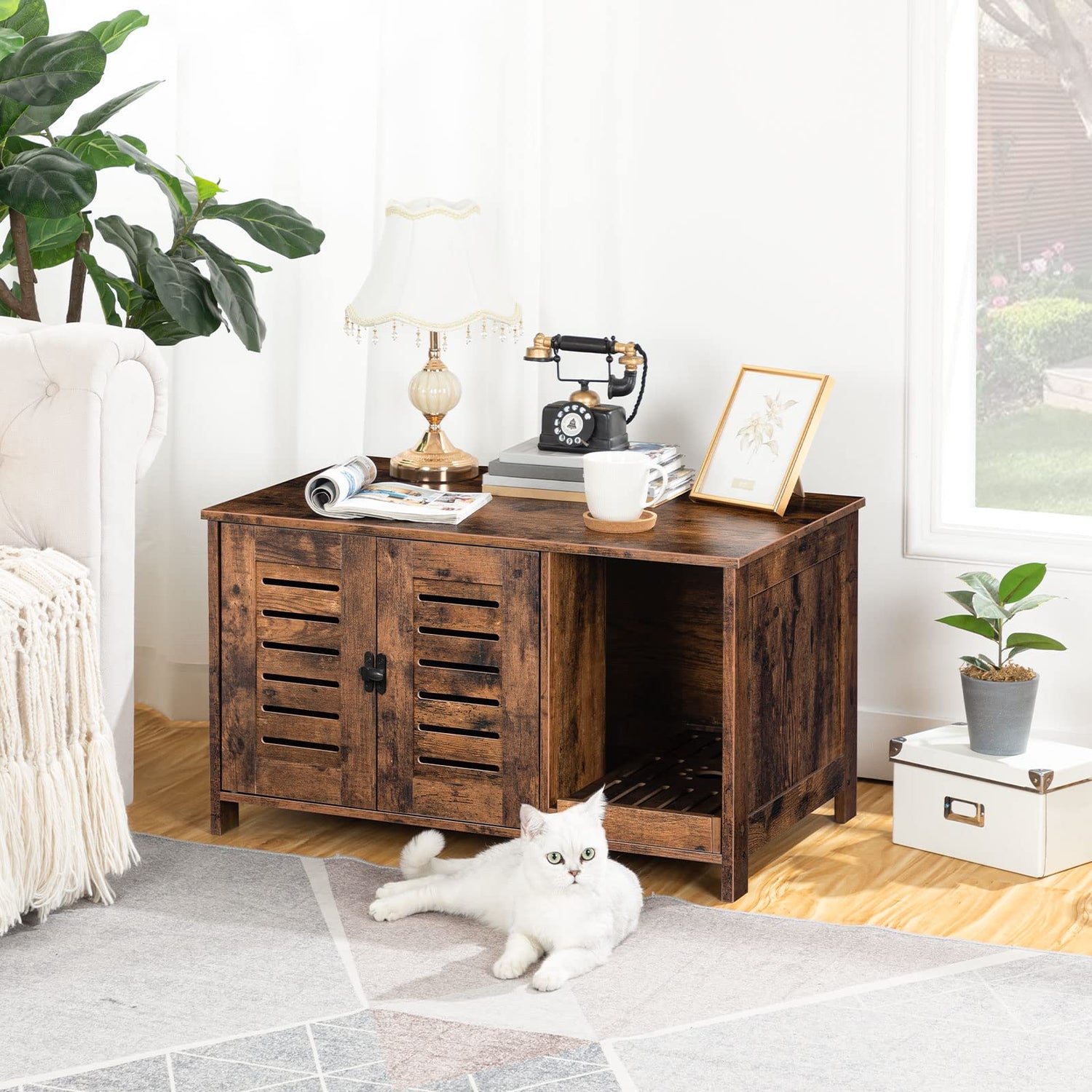 HOOBRO Cat Litter Box Enclosure, Double Door Litter Box Furniture, Hidden Litter Box Furniture, Splash-Proof Litter Control Board, Side Table, Coffee Bedside Table, Rustic Brown FG80MW01