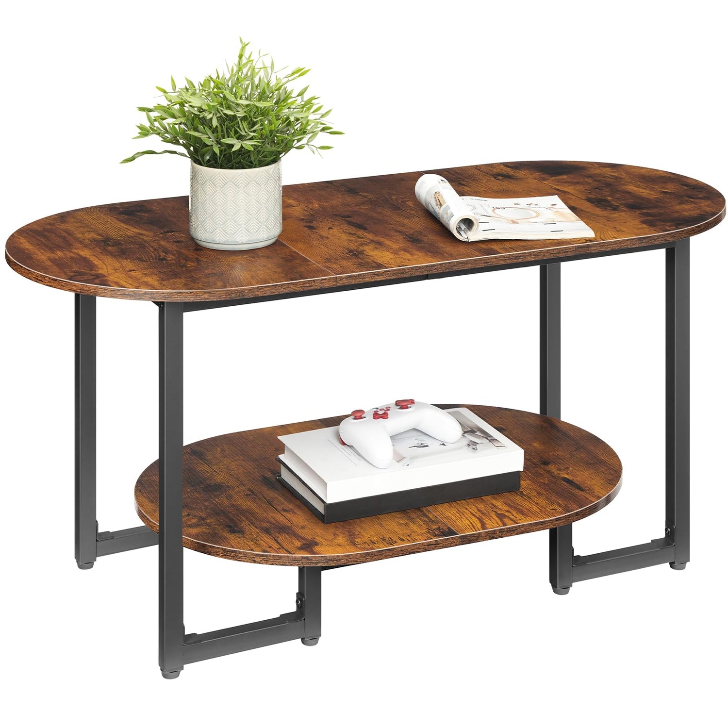HOOBRO Coffee Table for Living Room, Oval Small Coffee Table with 2-Tier Open Storage Shelf, Industrial Cocktail Tea Table, Wooden Desktop Center Table, Farmhouse, Home Office, Rustic Brown BF09KF01