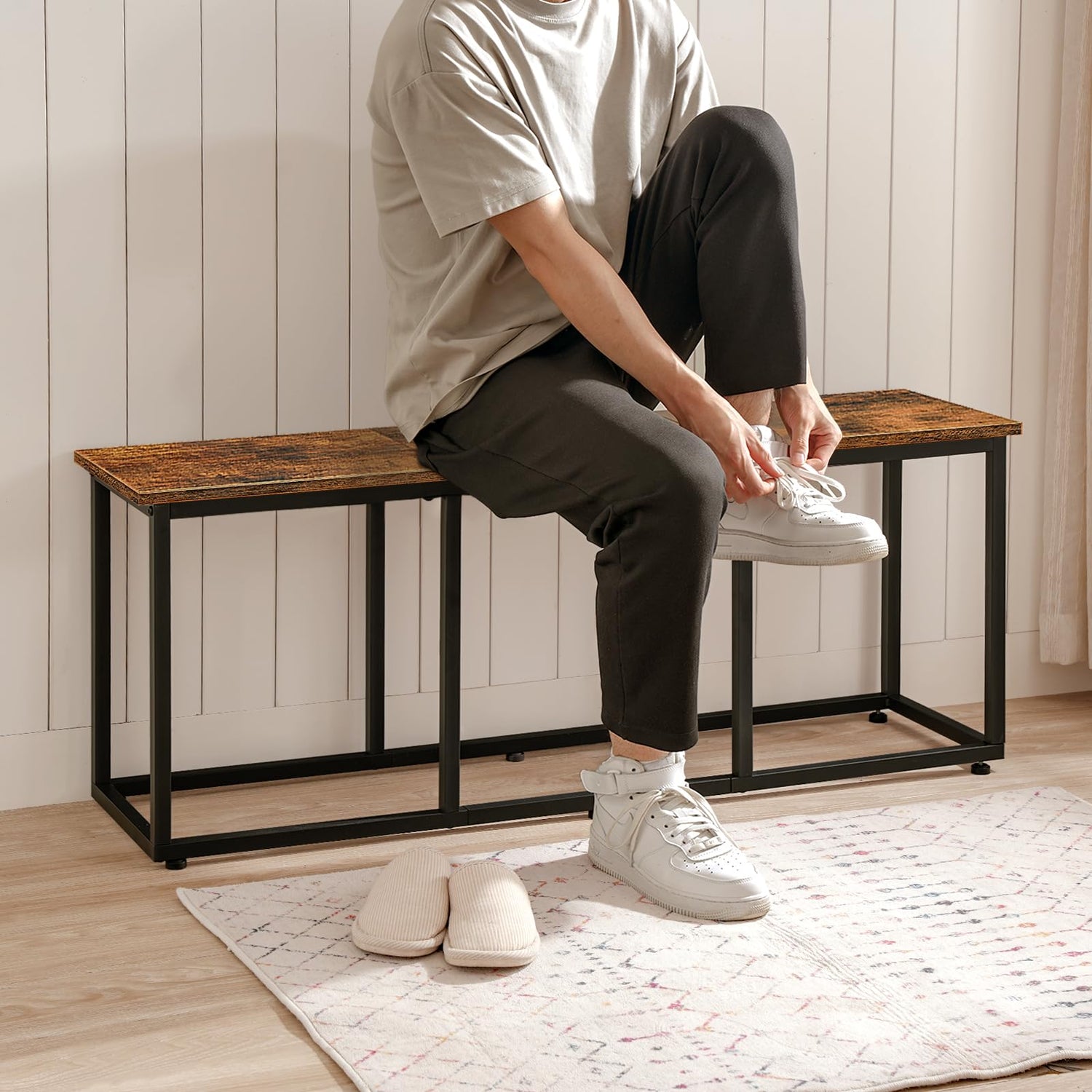 HOOBRO Dining Bench, 47.2 Inch Dining Table Bench, Industrial Style Kitchen Bench, Steel Frame, Easy to Assemble, for Kitchen, Dining Room, Rustic Brown and Black BF45CD01